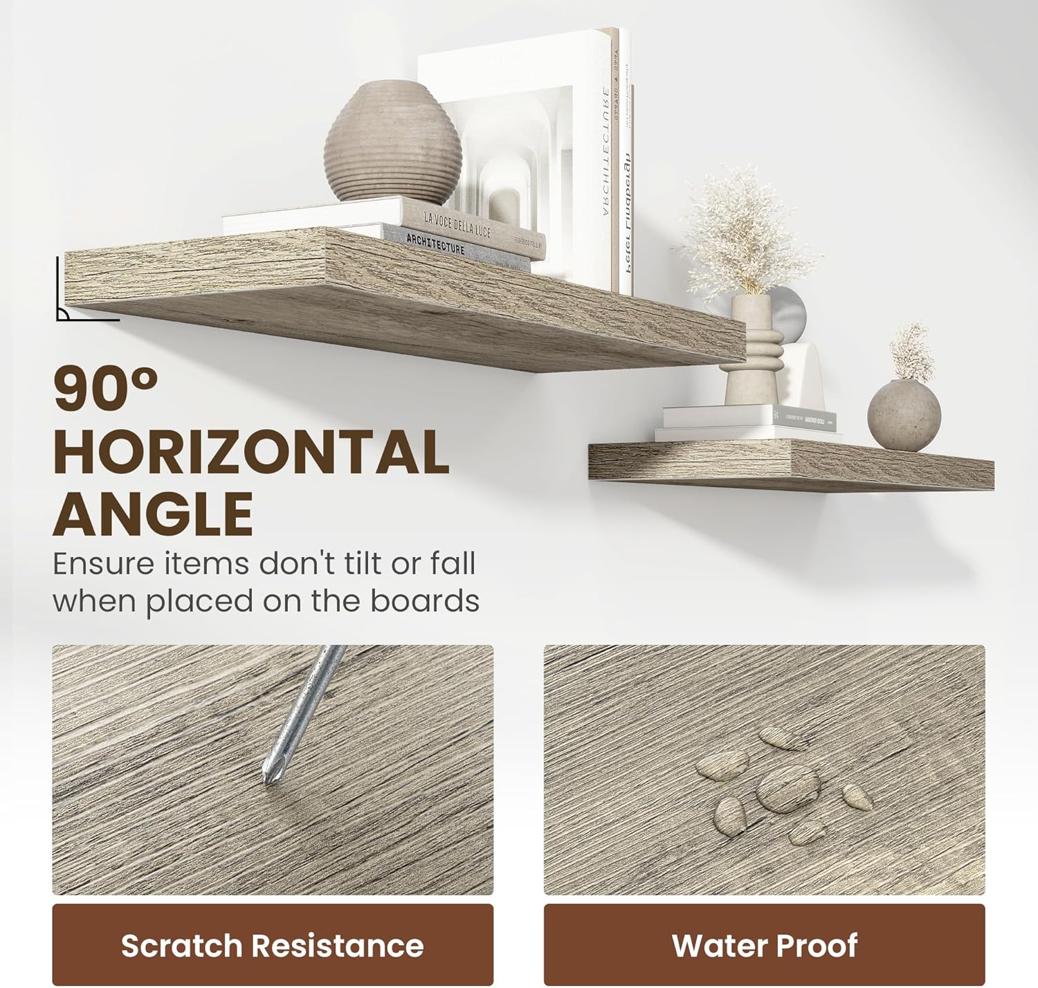 • 【Premium Quality Construction】Crafted from high-grade engineered wood with an invisible one-piece bracket, these floating shelves offer a robust and sleek design. The rustic wooden grain finish not only adds a touch of elegance but also infuses warmth into any room, making them a perfect fit for both modern and traditional interiors.