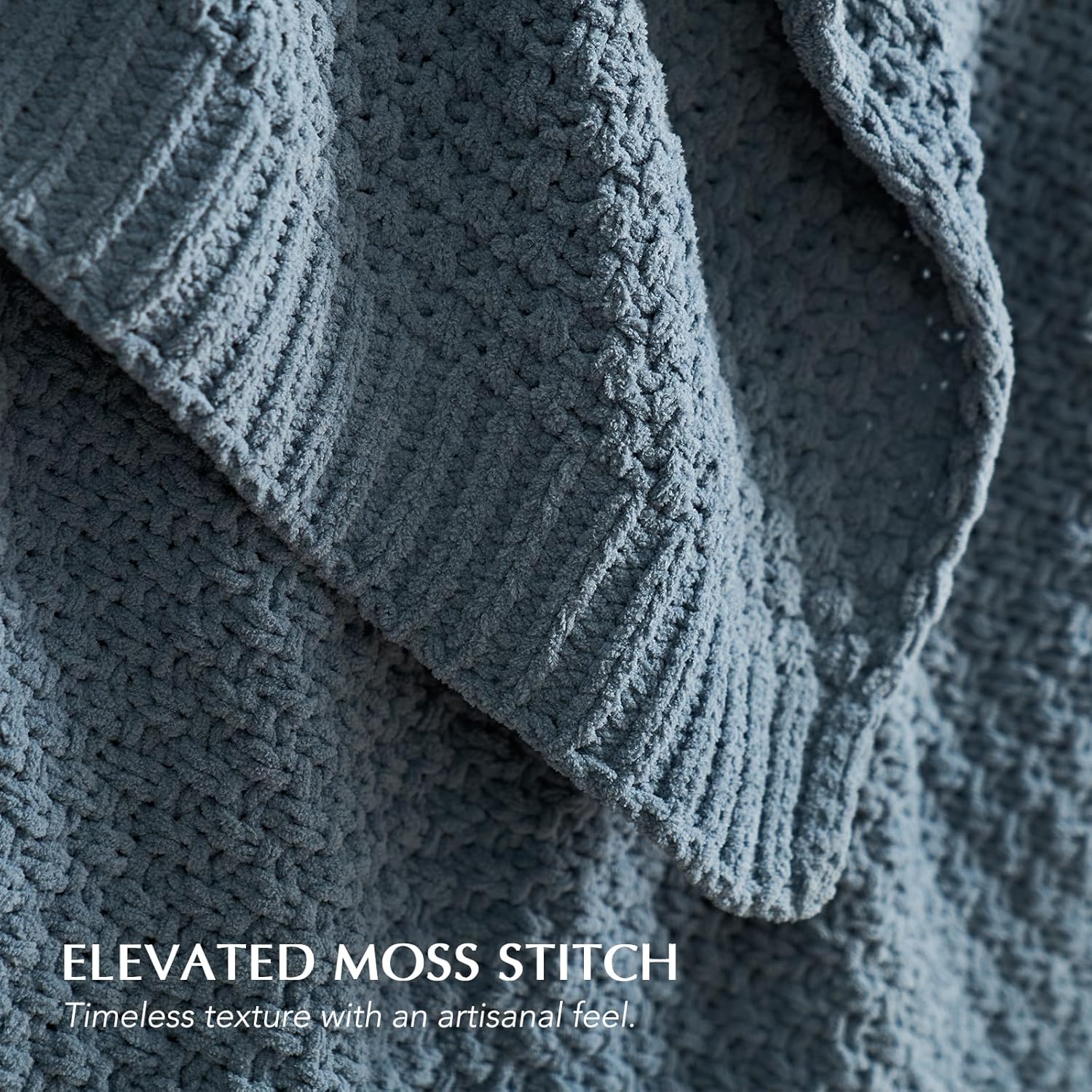 Chunky Chenille Knit Throw Blanket for Couch, Soft Luxurious Moss Stitch Blankets for Bed, Cozy Decorative Farmhouse Knitted Throws for Sofa, Stormy Blue, 60" x 80"