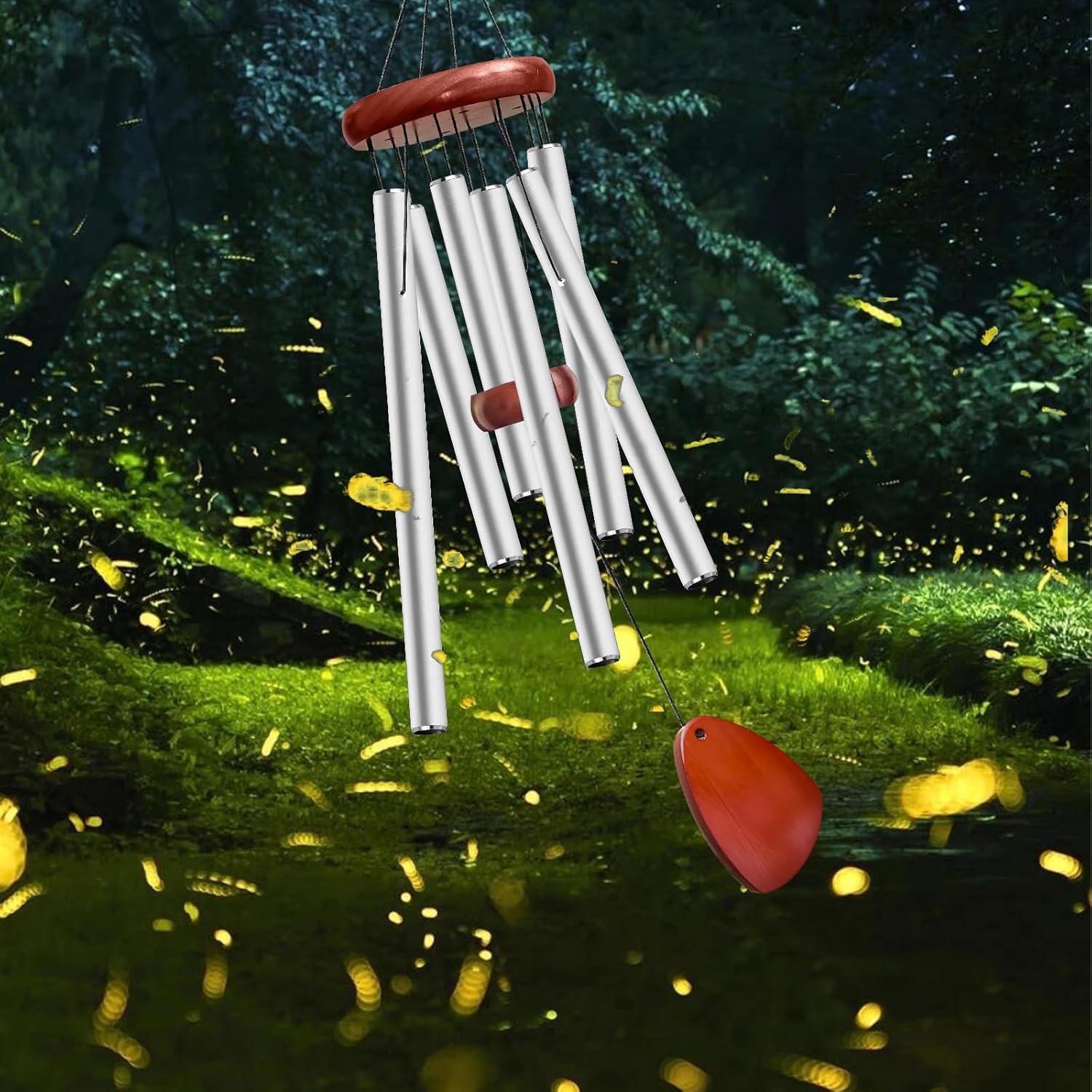 - ♬【Premium Material】Through repeated tests and experiments on a large number of materials, due to the characteristics of pine wood is not easy to crack and decay, we chose pine wood as our wood material. The main body of the wind chime is made of aluminum tubes and chamfered with spray paint, which is rust-proof and sturdy, making the life of the wind chime much longer and more beautiful and durable at the same time.