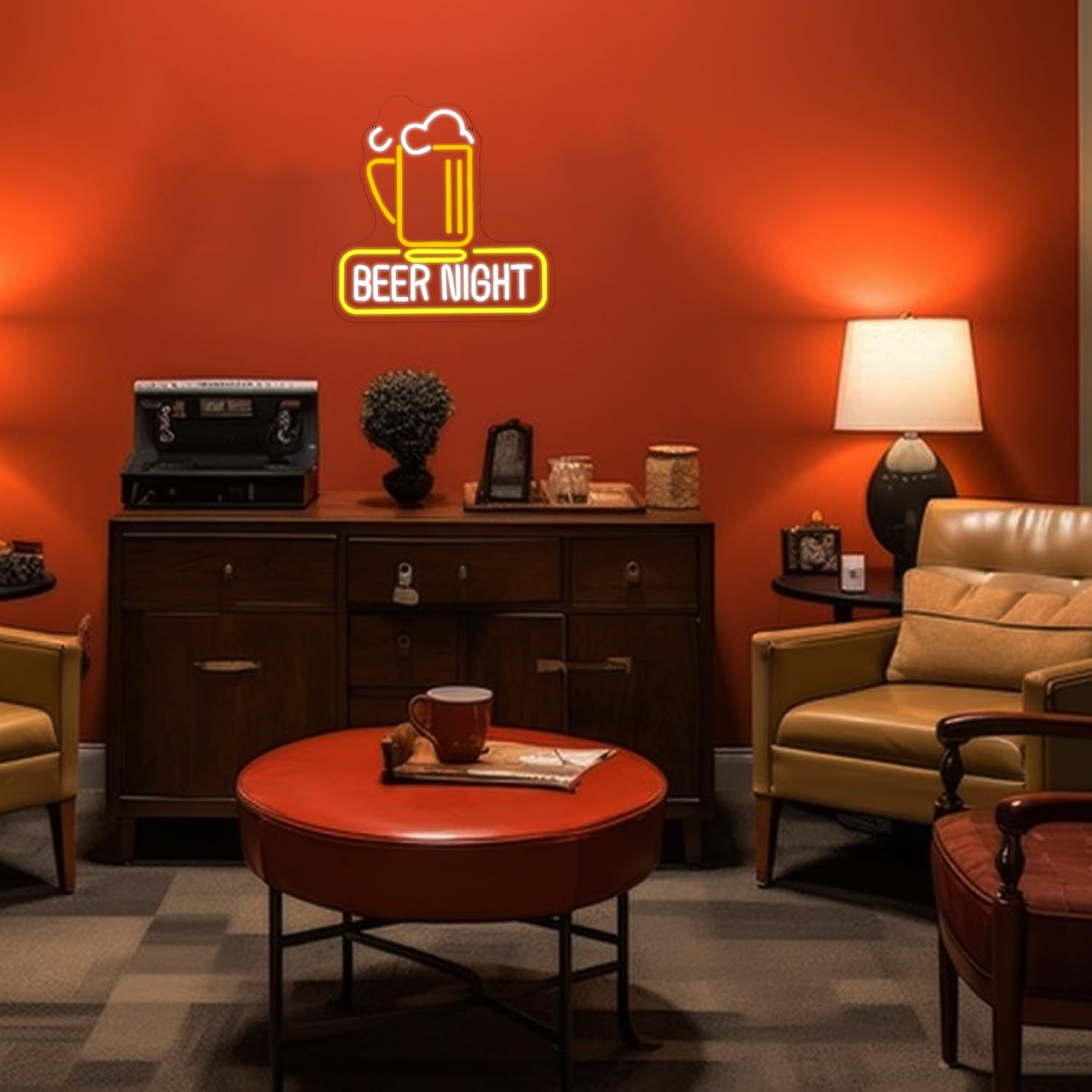Beer Night Neon Sign for Man Cave Bar Decor Yellow White Beer Neon Light Bar Neon Sign Wall Art for Bedroom Beer Pub Man Cave Restaurant Party Decor
