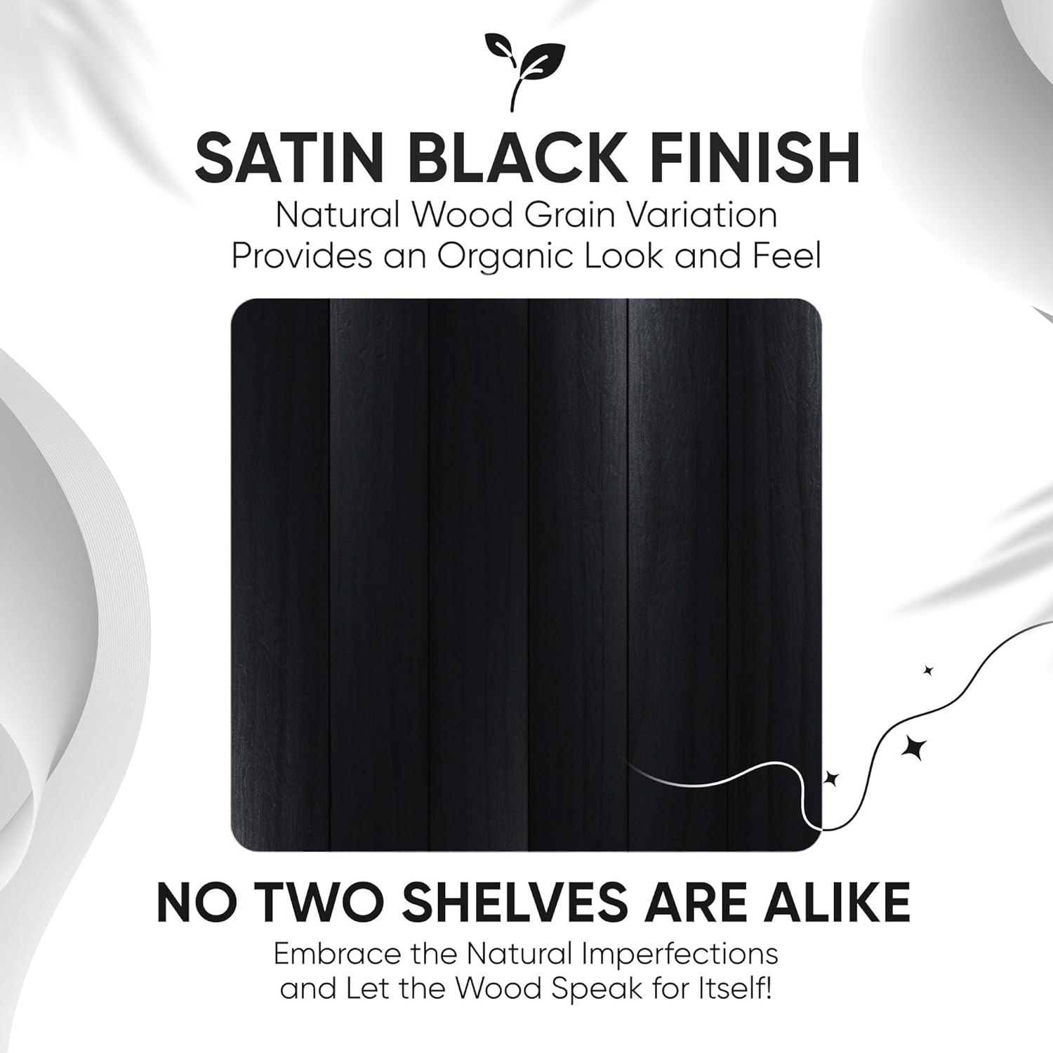Homeforia Floating Shelf Black 12 inch, High End Solid Real Wood Small 12inch Floating Shelves for Wall Mounted, Black Wooden 12 in Floating Shelves, Heavy Duty Bracket, 12 X 6.5 X 1.75 inch, Set of 2