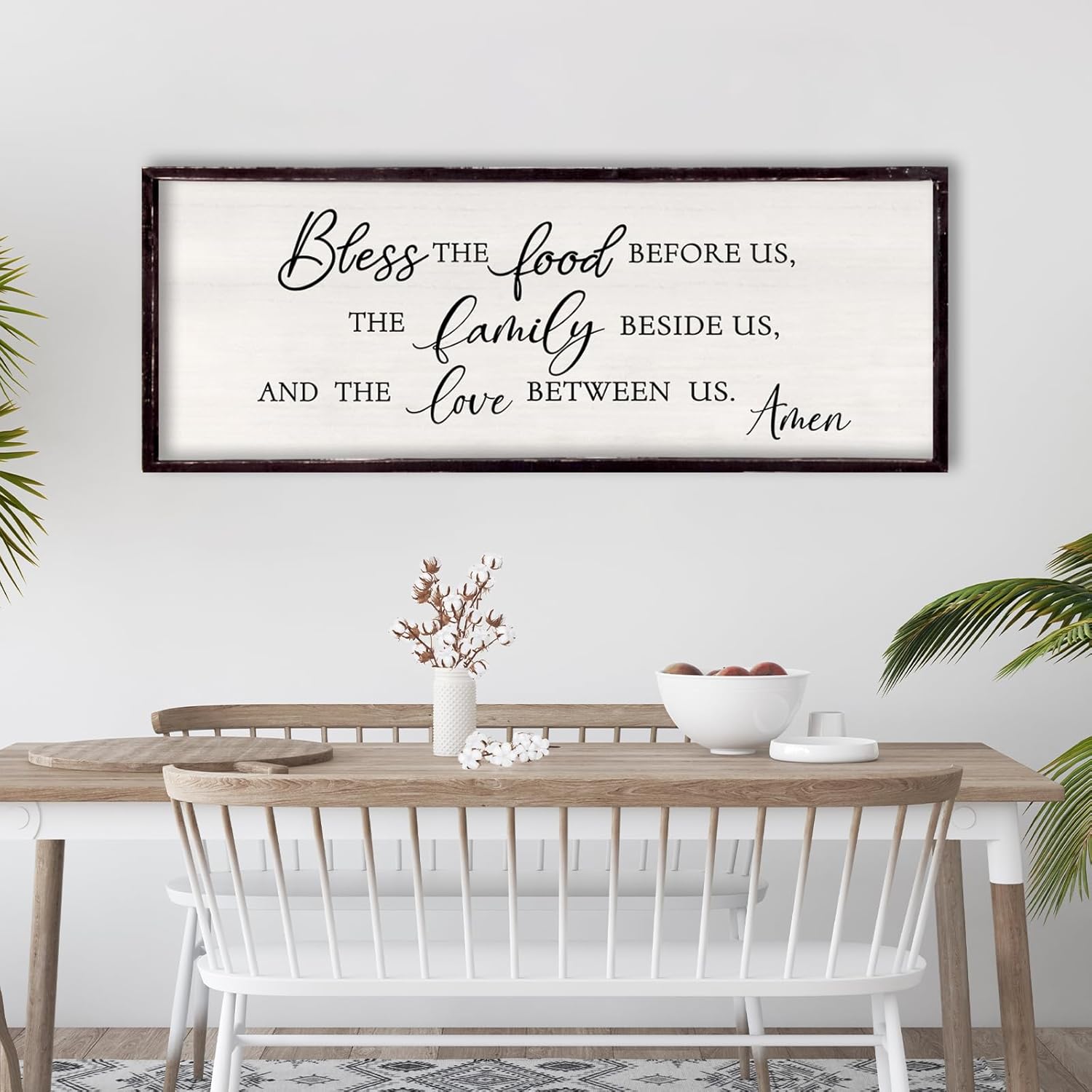 Bless the Food Before Us, the Family Beside Us, and the Love between us Framed Wall Art for Christian God Jesus Christ Prayer, 32''×12'' Positive Holy Religious Rustic Bible Verse for Dining Room