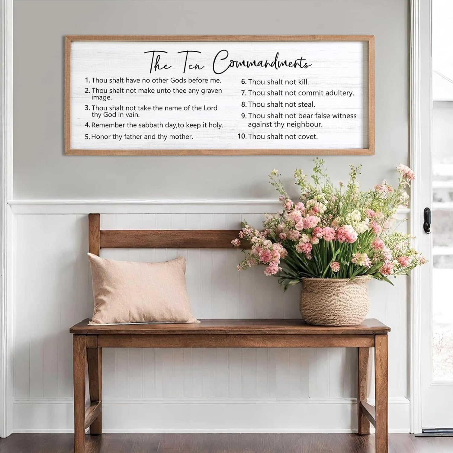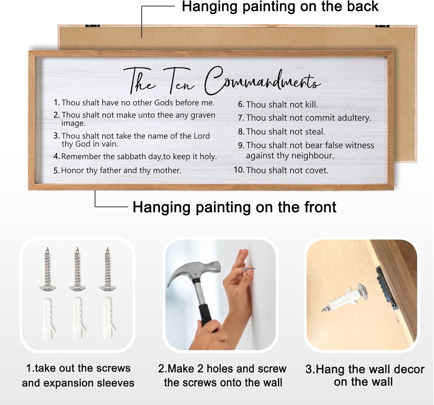 - 【Encouraging Words】 The Ten Commandments large hanging wood sign adopt minimalist letters on the white background, showing constant reminder of faith and devotion in any setting and you passion for god, adding a touch of elegant, and classic beauty to your space and giving people a calming feeling.