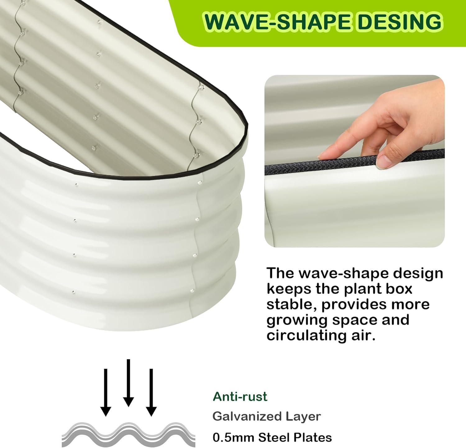 2 Pcs 4.5x2x2ft Oval Raised Garden Bed, Galvanized Raised Beds,Open-Ended Base Metal Raised Planter Beds,Garden Bed Outdoor,Planter Raised Boxes for Vegetables, Flowers,Tool-Free Asse,White
