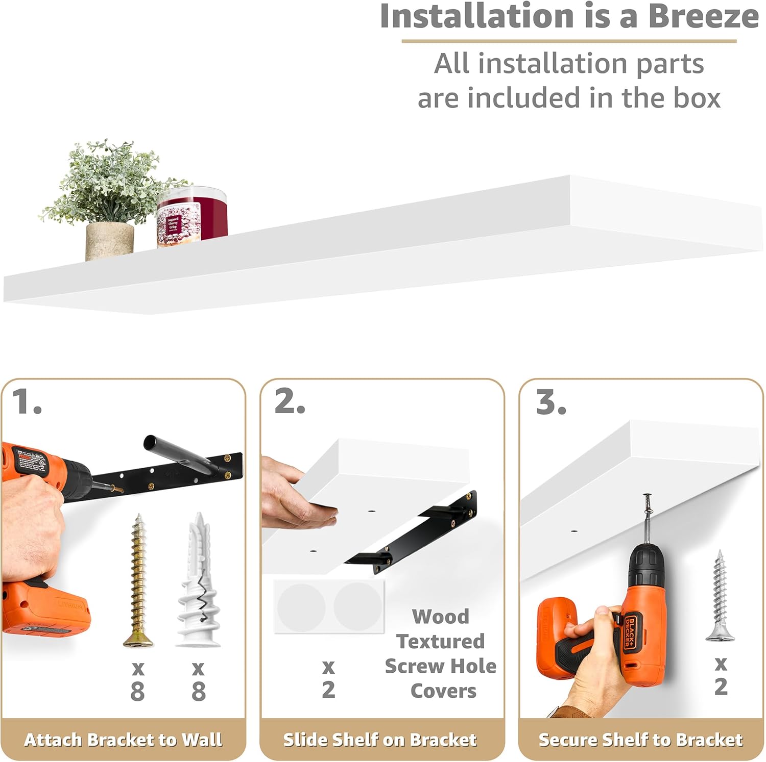 Sorbus Floating Shelves for Wall - 48 Inch Long Bathroom Shelves, Wall Decor for Bedroom, Kitchen, Living Room & Book Storage - Mounted Floating Shelf with Invisible Brackets (White, 3 Pack)