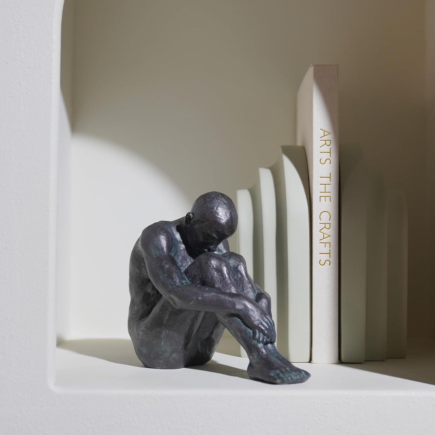- BOOKSHELF DECORATIVE OBJECTS: Abstract modern sitting man statue made of resin, strong structure and high quality, professional casting, meticulous, no odour.