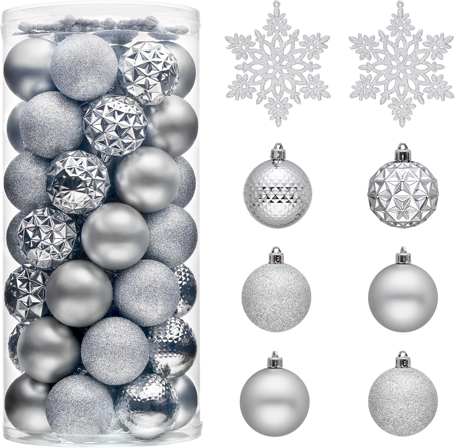 Valery Madelyn Christmas Tree Decorations Ornament Set for Fall Halloween, 50ct 2 Inches Silver Shatterproof Christmas Ball Ornaments Hanging Xmas Holiday Party Decor