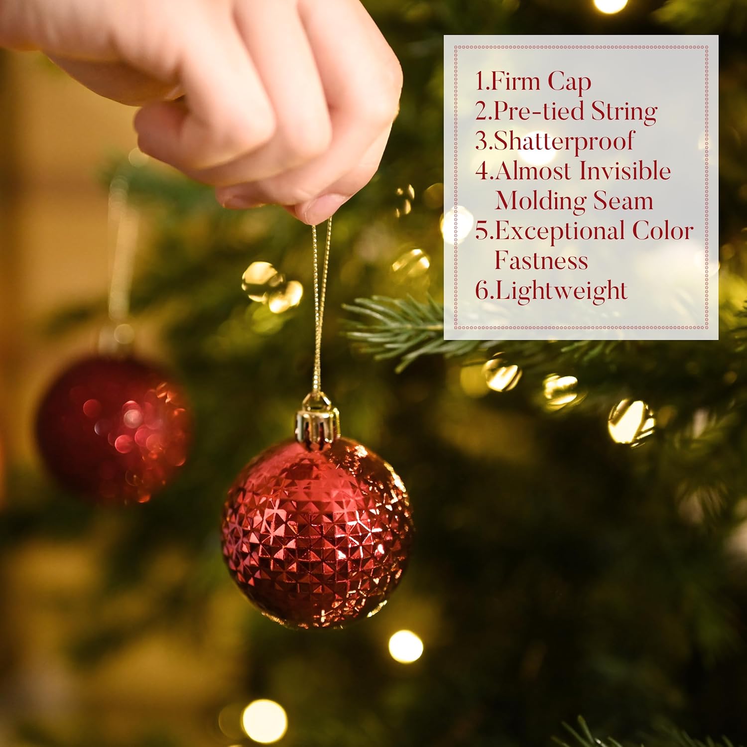 • 【Package and Size】This ornament ball set include 50pcs Christmas ornaments measuring 2 inches in diameter, featuring seamless connections for a polished look
