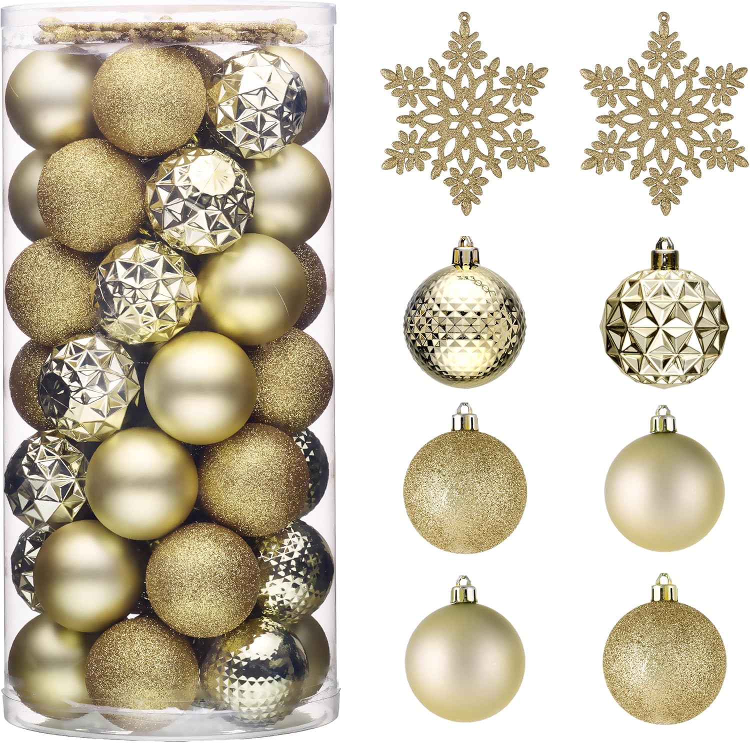 - 【Package and Size】This ornament ball set include 50pcs Christmas ornaments measuring 2 inches in diameter, featuring seamless connections for a polished look