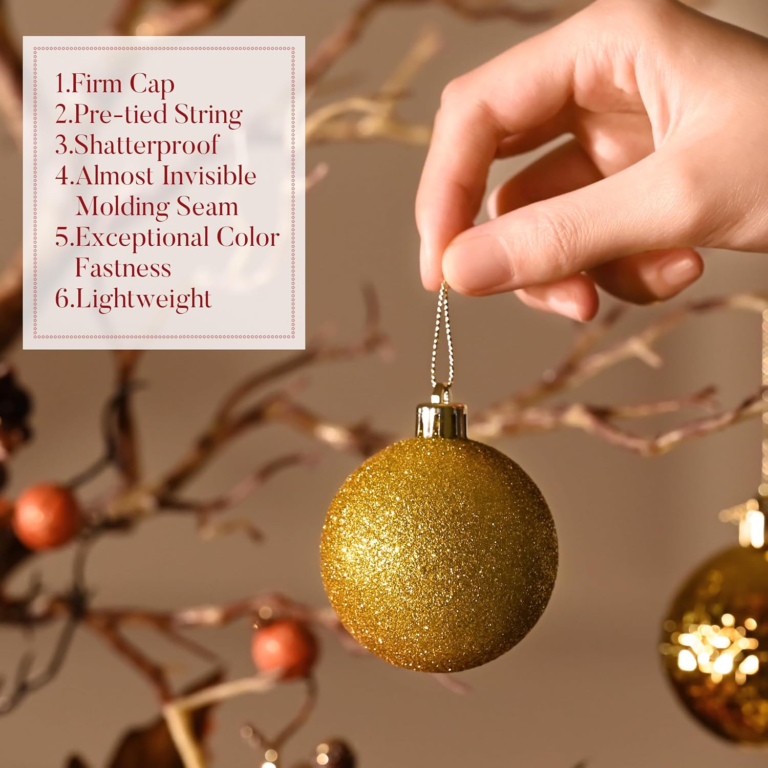 - 【Shatterproof】These Christmas ornament are made of sufficient thickness plastic to prevent breakage. The ornament set remains intact even after falling from 2 meters high onto a hard floor. It is suitable for family