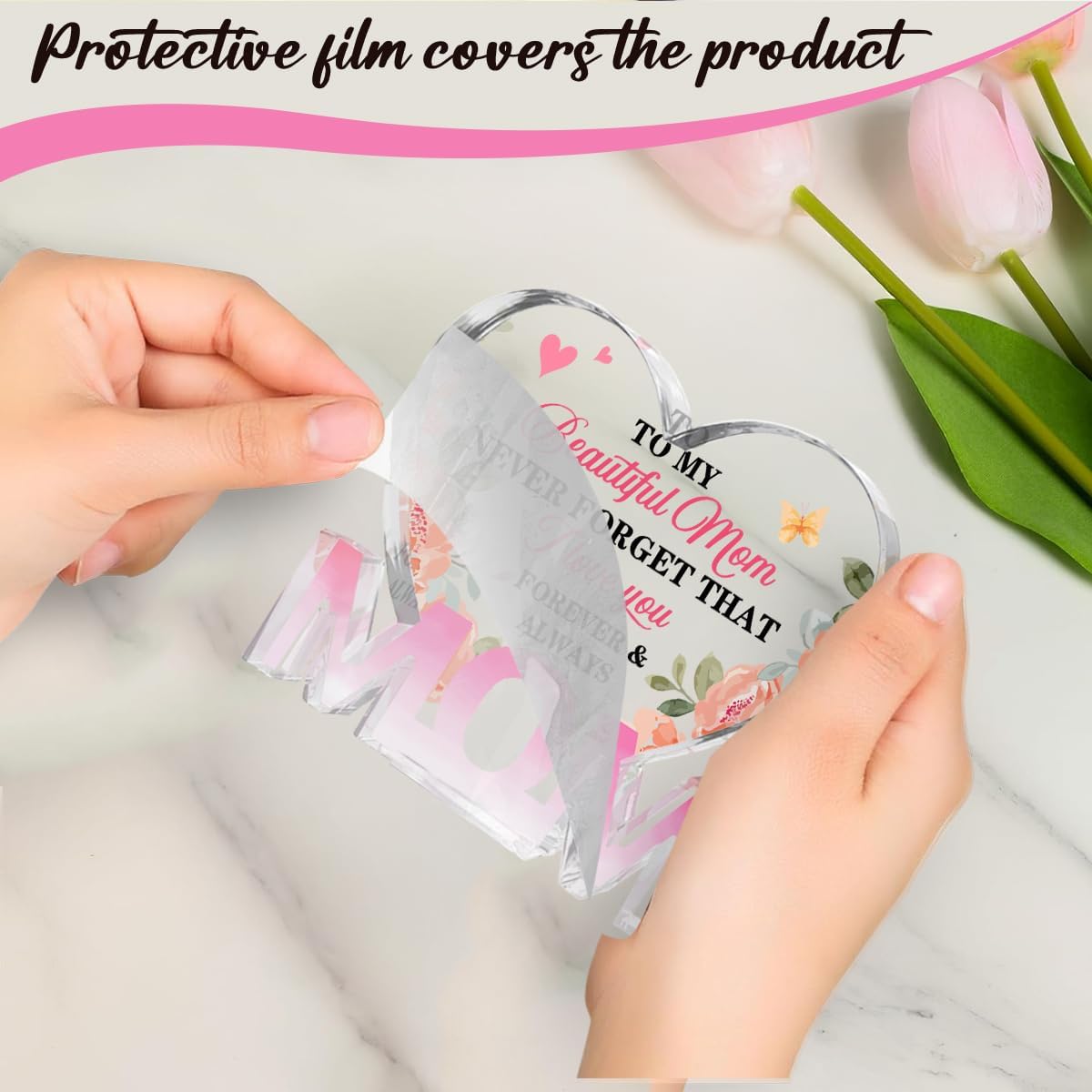 Mothers Day Gifts Best Mom Gifts -Gifts for Mom from Daughter Son - Best Mom Ever Gifts Unique Mother Birthday Acrylic Heart-Shaped Plaque Desk Decorations Present for Mom Christmas Anniversary