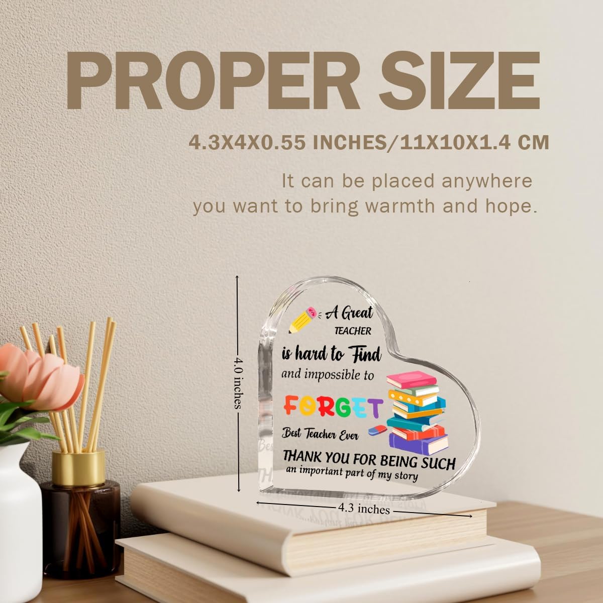 Teachers Day Graduation Season Opening Season Gifts Teacher Gifts Teacher Appreciation Gifts Best Teacher Gifts for Women Acrylic Heart for Her Coworker Friend Principal Educator Birthday Christmas