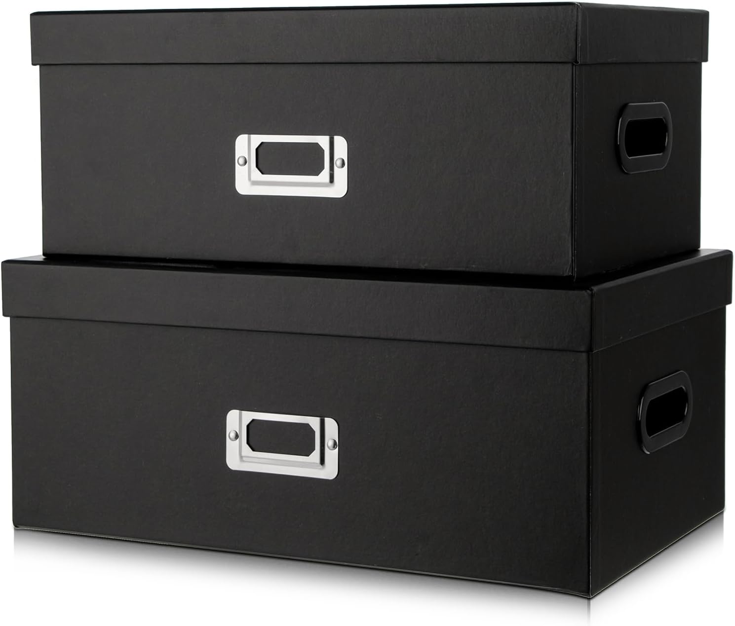 Briful Decorative Storage Boxes with Lids Set of 2 – 14'' + 13'' Set Rectangular Nesting Boxes – Cardboard Organizer with Lift-Top Lid – Black Wood for Home & Office
