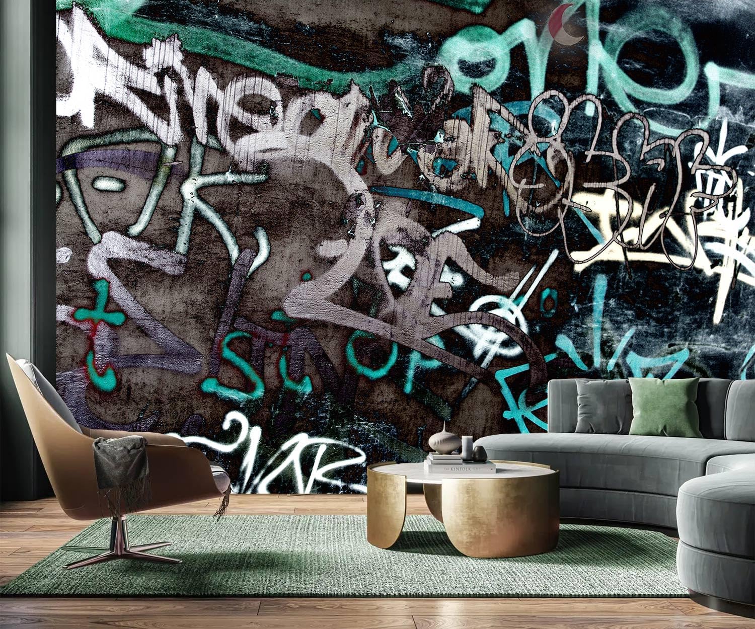 AFZEVEB-Black and White Art Graffiti Wallpaper Wall murals for Bathroom 159"x107" (Not Peel and Stick)