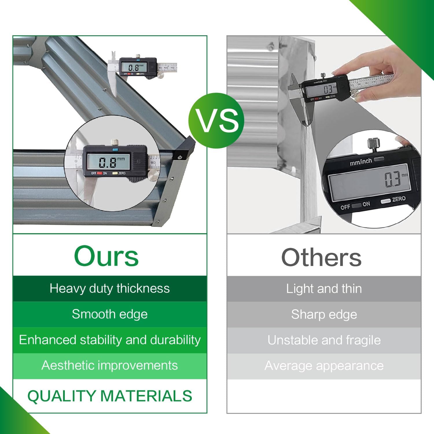 - DURABLE GALVANIZED MATERIAL: GARDMAX outdoor raised garden beds are made from 0.8mm heavy-duty galvanized material, ensuring exceptional longevity and durability. It is more resistant to high temperatures and freezes, making it very suitable for outdoor use. And this metal will survive the elements for decades, but when you're ready to replace it, the metal is entirely recyclable