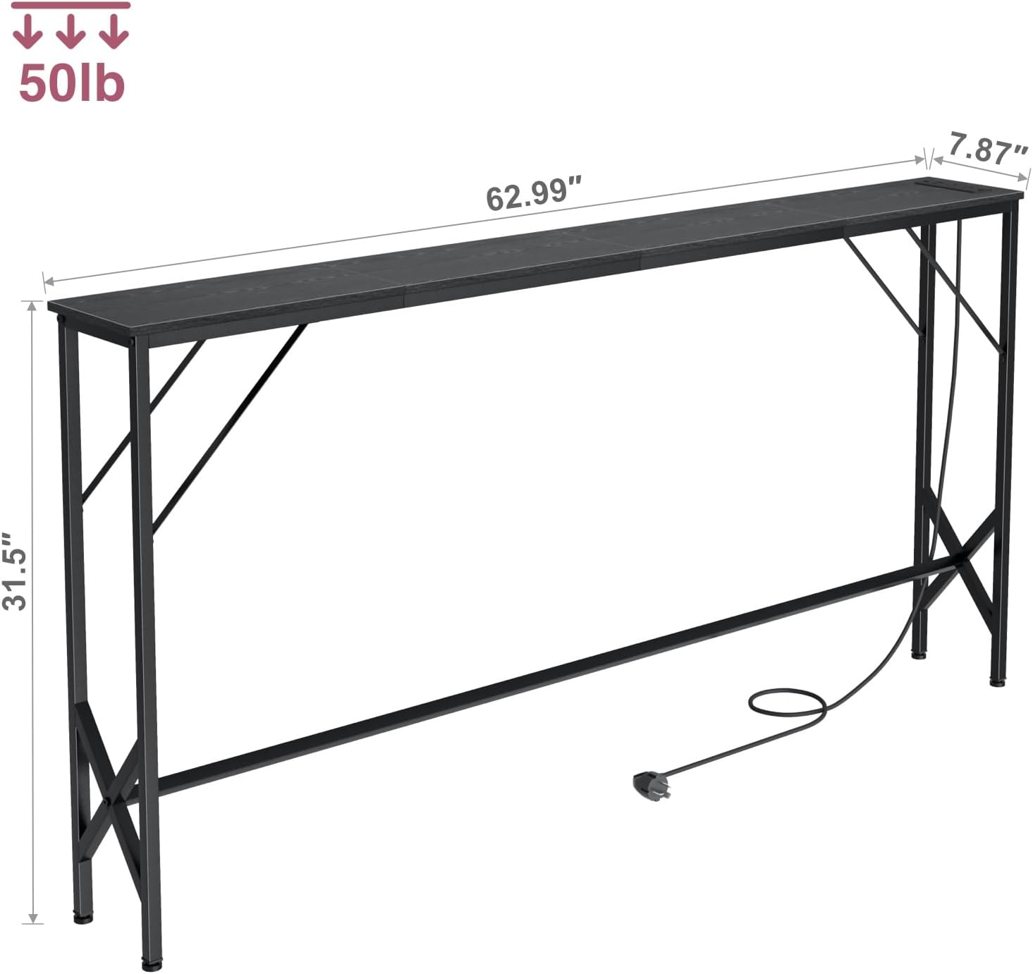 63'' Console Table, Skinny Entryway Table with Fast-Charging Station, Narrow Long Sofa Table, Behind Slim Couch Table for Entrance, Hallway, Living Room Decor ST-BK160-1