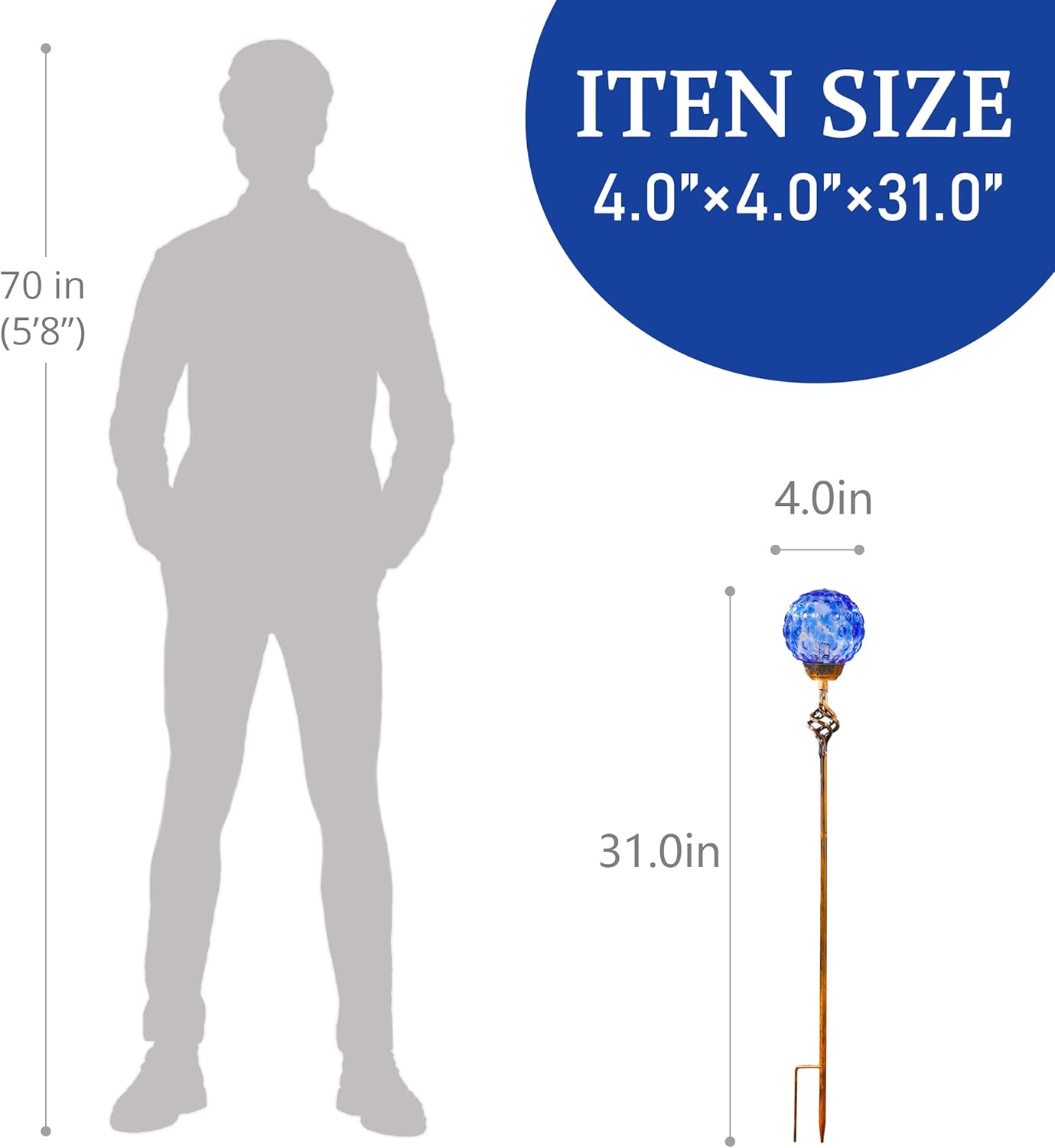 Garden Solar Lights, Decorative LED Honeycomb Glass Ball Garden Stake, Glass and Metal Outdoor Decoration, 4 x 31 Inch (Dark Blue)