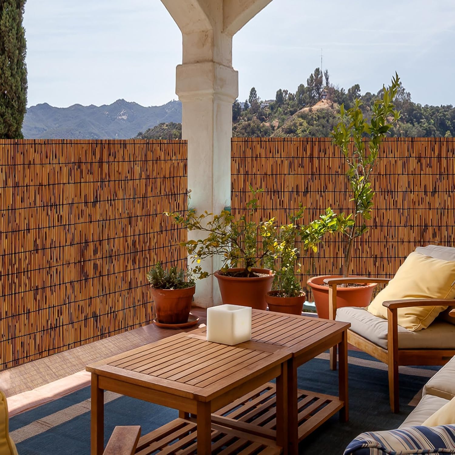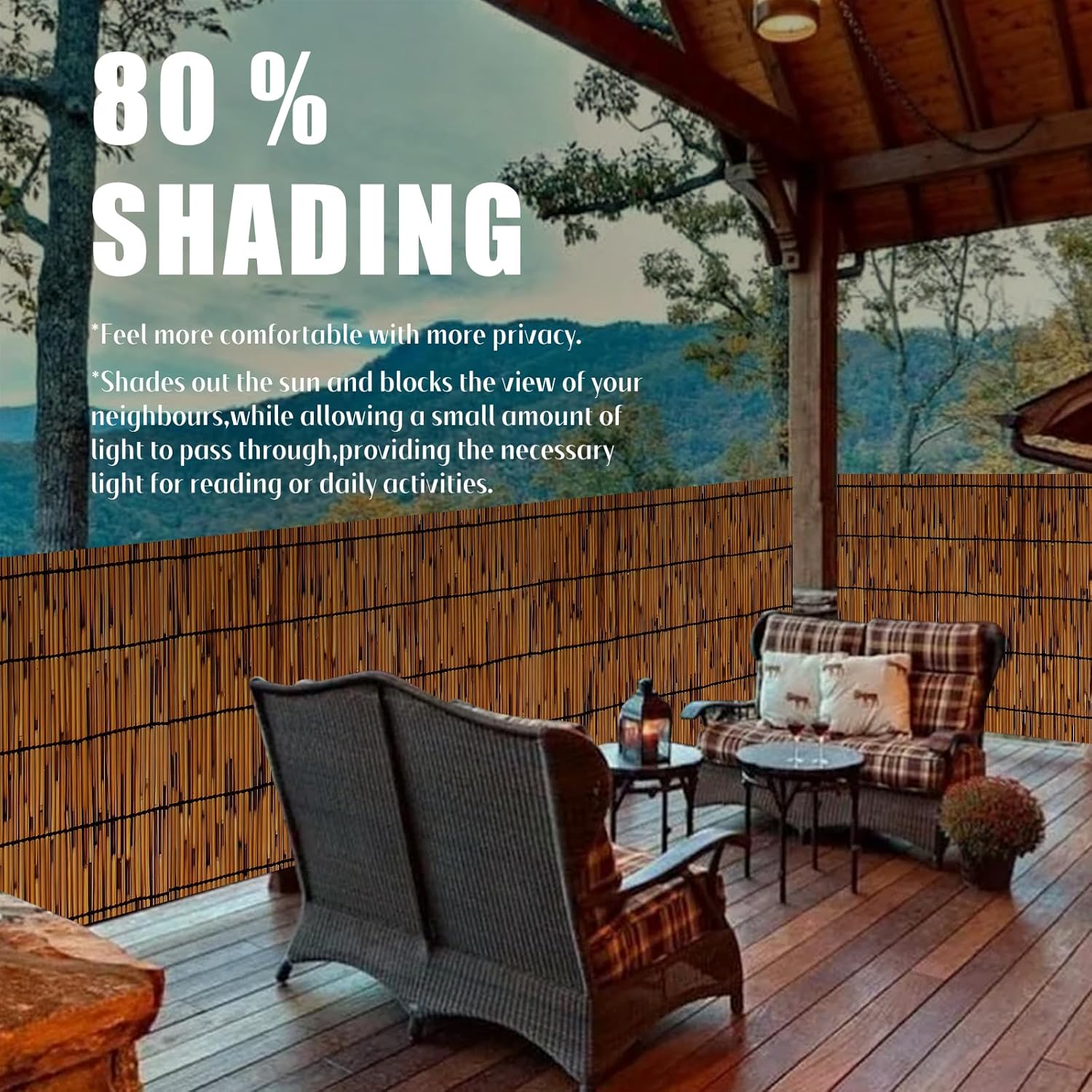 - 【80% Blackout And Privacy】The bamboo reed fencing blocks the sun and the view of neighbours. In addition, the 80% blackout reed fencing allows light to pass through, providing the necessary light for reading or everyday activities