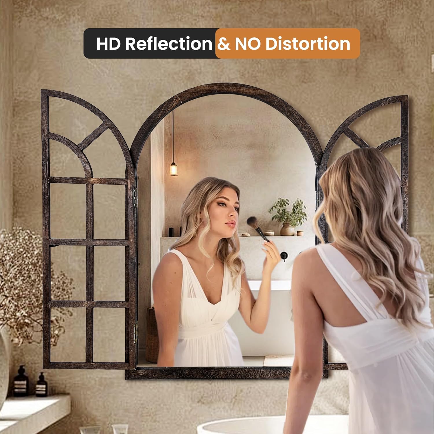 - 【Rustic Farmhouse Style】This arched wall mirror features a distressed wood windowpane design, adding a charming rustic farmhouse touch to any space. Perfect for those who love vintage-inspired or cottagecore aesthetics.