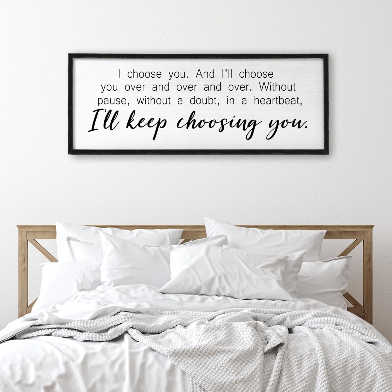I Choose You Sign Wall Decor Art Above Bed 32X12 Inch I Love You Romantic Wood Framed for Master Bedroom Over Bed I'll Keep Choosing You Sign (Black)