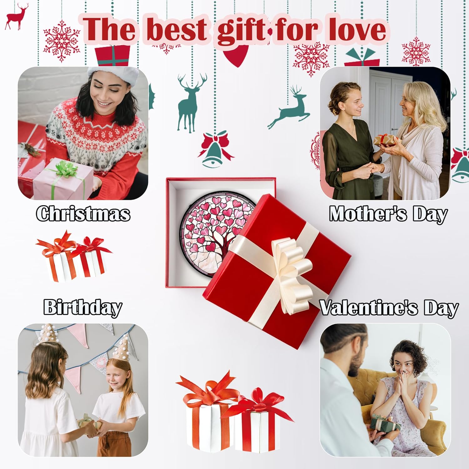 Stained Glass Window Hanging, Pink Love Heart Tree Suncatcher Hangings Beige Sun Catchers Decor for Birthday Holiday for Women, Men, Wife, Aunt, Mom 9.8IN