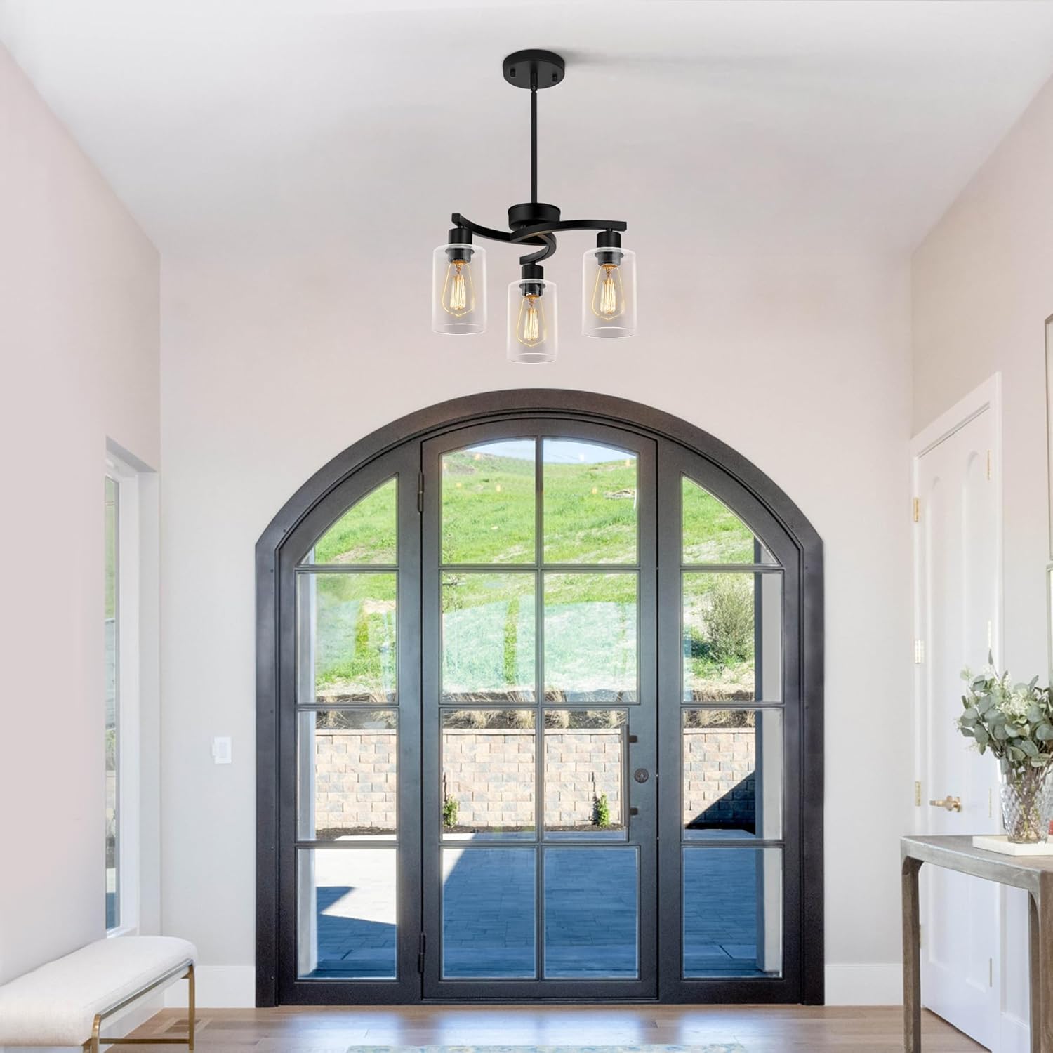- Modern Style: Glass pendant light has 3 arms that radiate outward from the central arc, presenting a simple but not simple beauty. The body of the black chandelier is made of high quality matte black metal with a fine polished surface. The clear glass shade not only ensures the soft scattering of light, but also complements the cold and hard texture of the metal, making the whole modern glass light fixture both powerful and delicate. The downward-facing glass shade does not easily accumulate dust and is easy to clean.