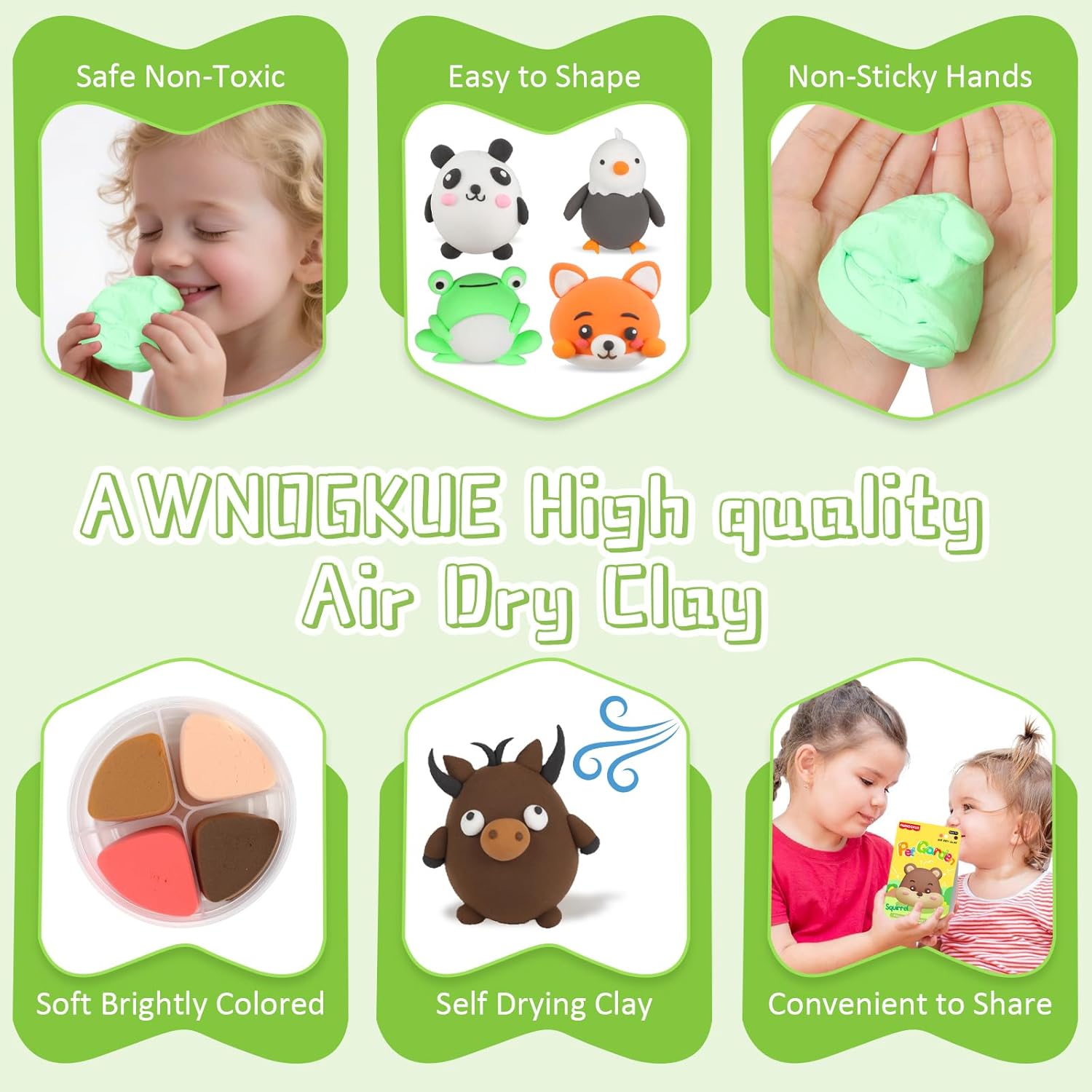 - 【 Eco-Friendly & Safety Non-Toxic】: Our air drying Clay is made from safe non-toxic and eco-friendly materials, strictly follow the requirements and standards of ASTM D-4236 and have passed EN71 certifications and American Children's Product Certificate. This air clay is easy to shape, non-stick, bend and stretch, soft and brightly colored, Perfect for beginners, Artists.
