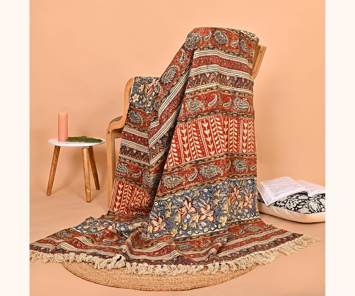 - Fringed Tassel Edges for a Boho Finish: The hand-tied tassels along each edge bring movement and texture, creating a relaxed yet refined look that fits effortlessly with bohemian, vintage, or minimalist décor.
