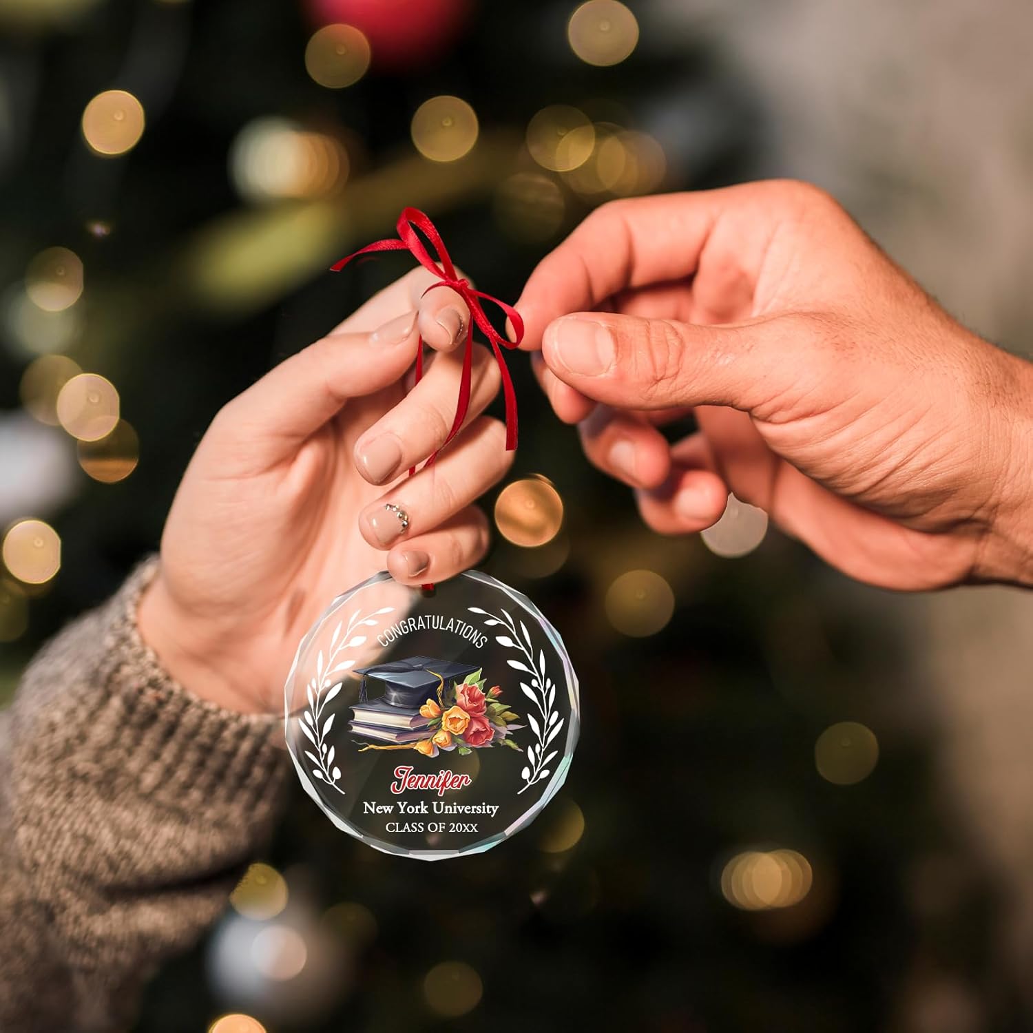 Personalized Graduate Glass Christmas Ornament, Class of 2025 Graduation Picture Ornament Gift for Congrats Son Daughter Friends, Custom Name School Graduation Ornaments Gifts