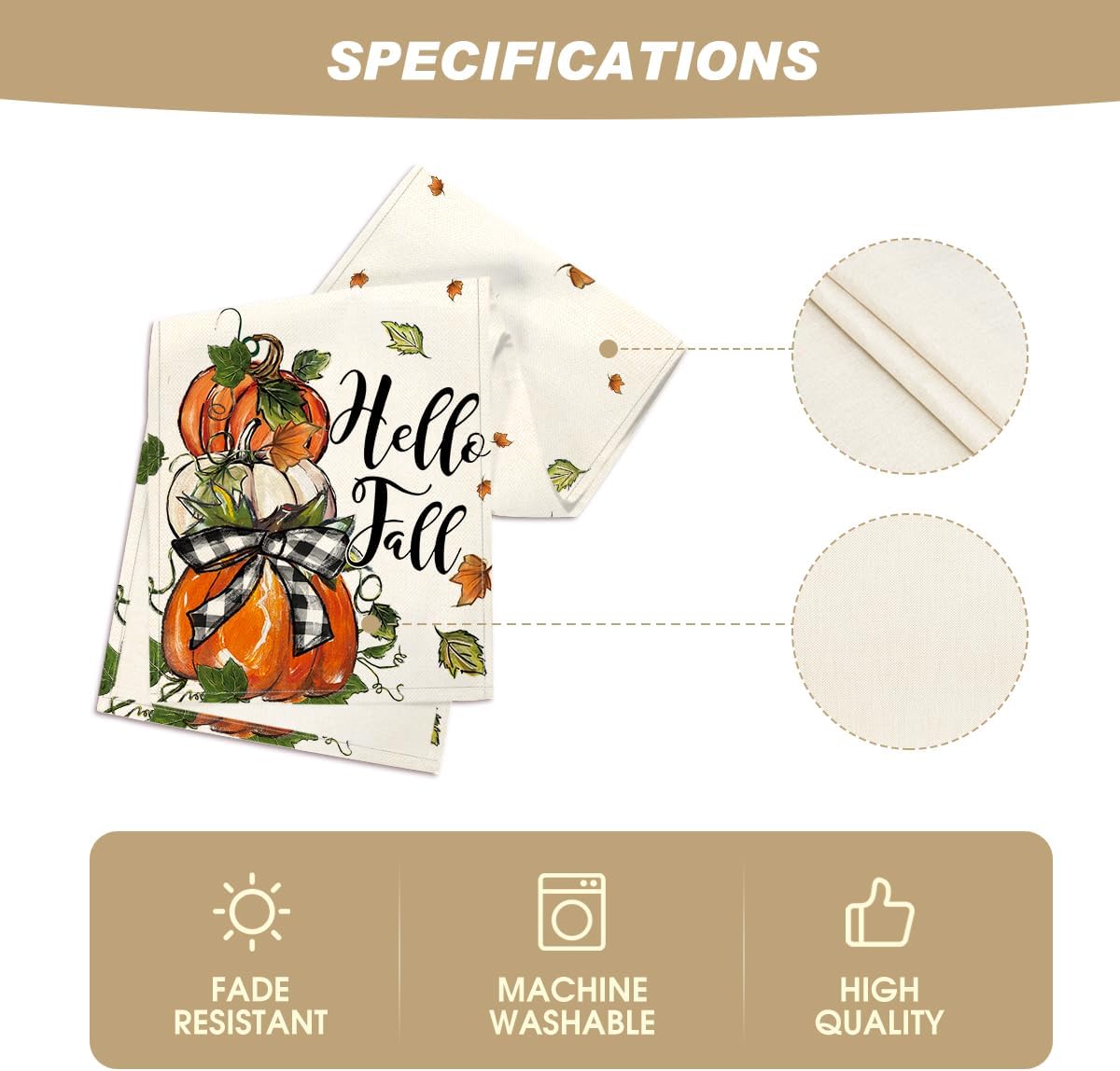 Artoid Mode Pumpkins Bowknot Maple Leaf 210 GSM Fall Table Runner, Seasonal Autumn Kitchen Dining Table Decoration for Home Party Decor 13x48 Inch