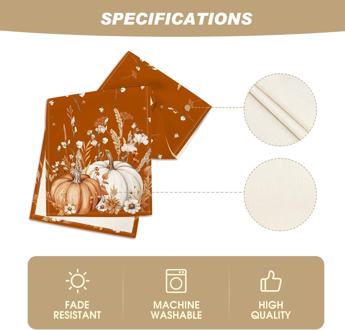 Artoid Mode Orange Pumpkins Leaves Flowers 210 GSM Fall Table Runner, Seasonal Autumn Kitchen Dining Table Decoration for Home Party Decor 13x36 Inch