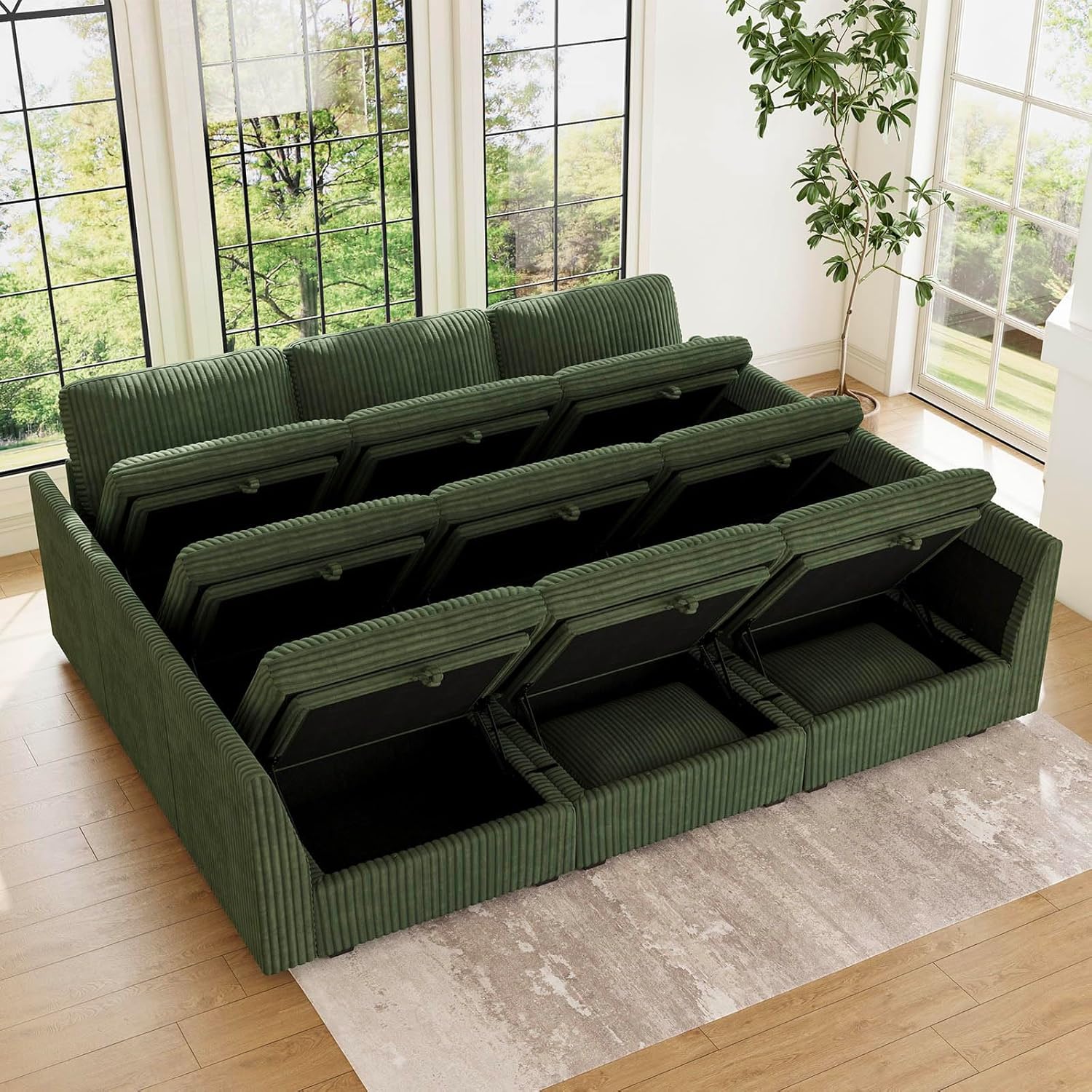 Belffin Modular Sectional Sofa with Sleeper Sofa, Oversized Cloud Couch with Extra Deep Seat, Upholstered 9 Seat Sectional Couches for Living Room, Plush Corduroy Green
