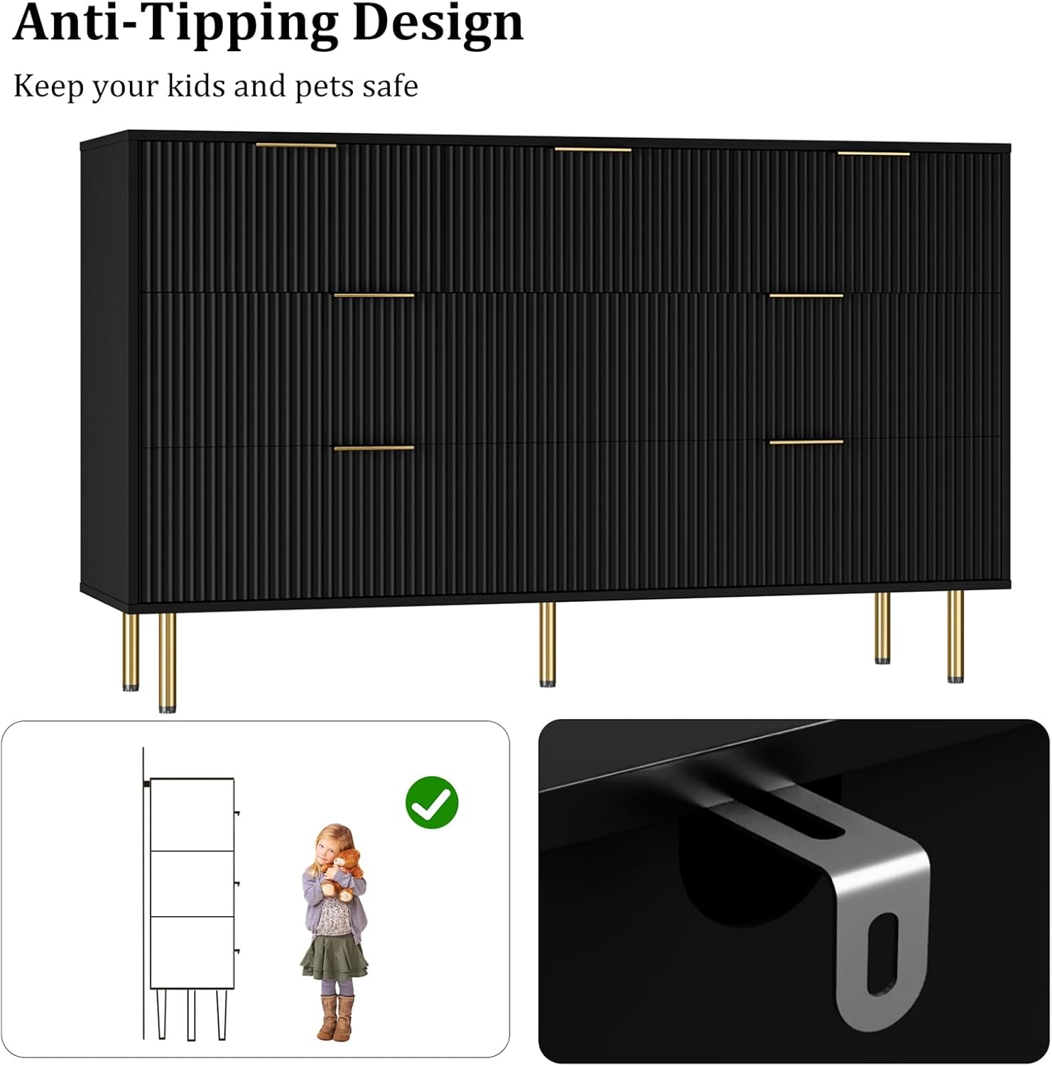 - Elegant Design: Featuring a stylish fluted design and chic gold handles, this modern dresser adds a touch of sophistication to any room decor.