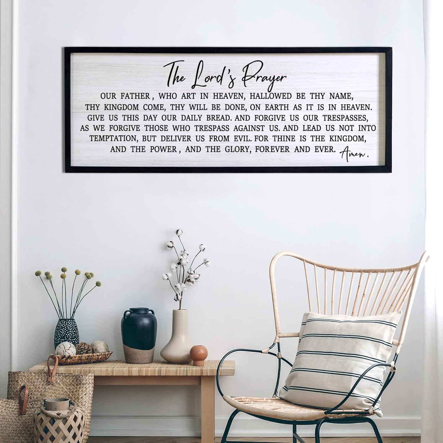 Our Father Prayer Bible Verse Framed Wall Art, 40''×15'' Rustic Religious Christian Lords Prayer Sign for God Jesus Christ Prayer, Horizontal Holy Inspirational Catholic Scripture Decor