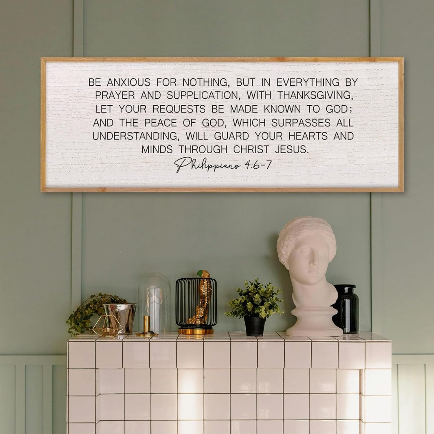 LuZhiQiang Be Anxious for Nothing Wall Decor 40"×15" Philippians 4:6-7 Bible Verse Sign Large Christian Scripture Wood Framed Hanging Decor (Wood)