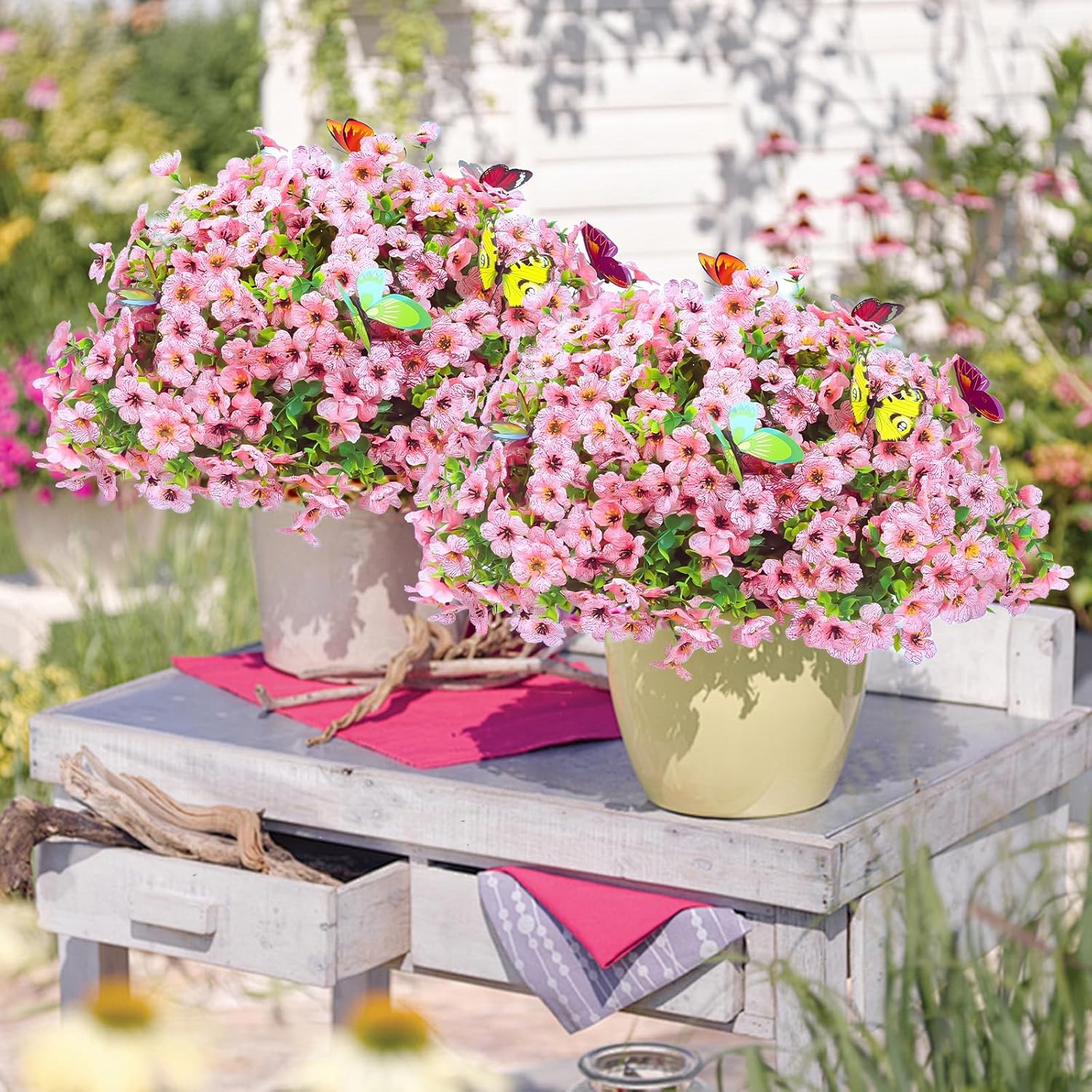 20 Bundles Artificial Flowers for Outdoors with 6 Faux Butterflies, UV Resistant Fake Flowers with Eucalyptus Leaves, Artificial Plants Outdoor for Patio Garden Porch Home Decor (Pink)