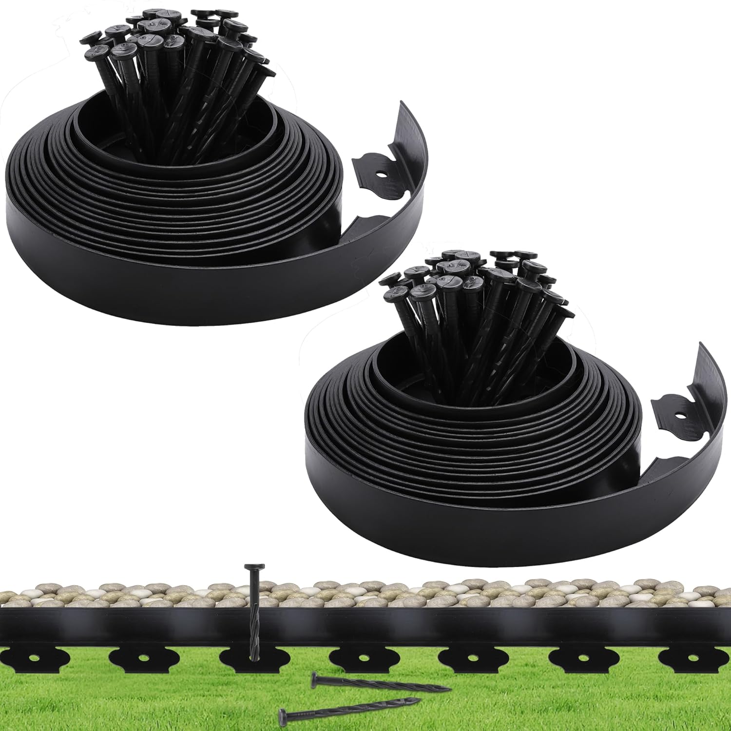 Garden Landscape Edging Kit Flexible Lawn Edging, Landscape Edging Border 33 FT with 30 Spikes, 2" Tall No Dig Garden Edging Roll for Landscaping Flower Beds Yard Pathway (2IN x 66FT, Black)