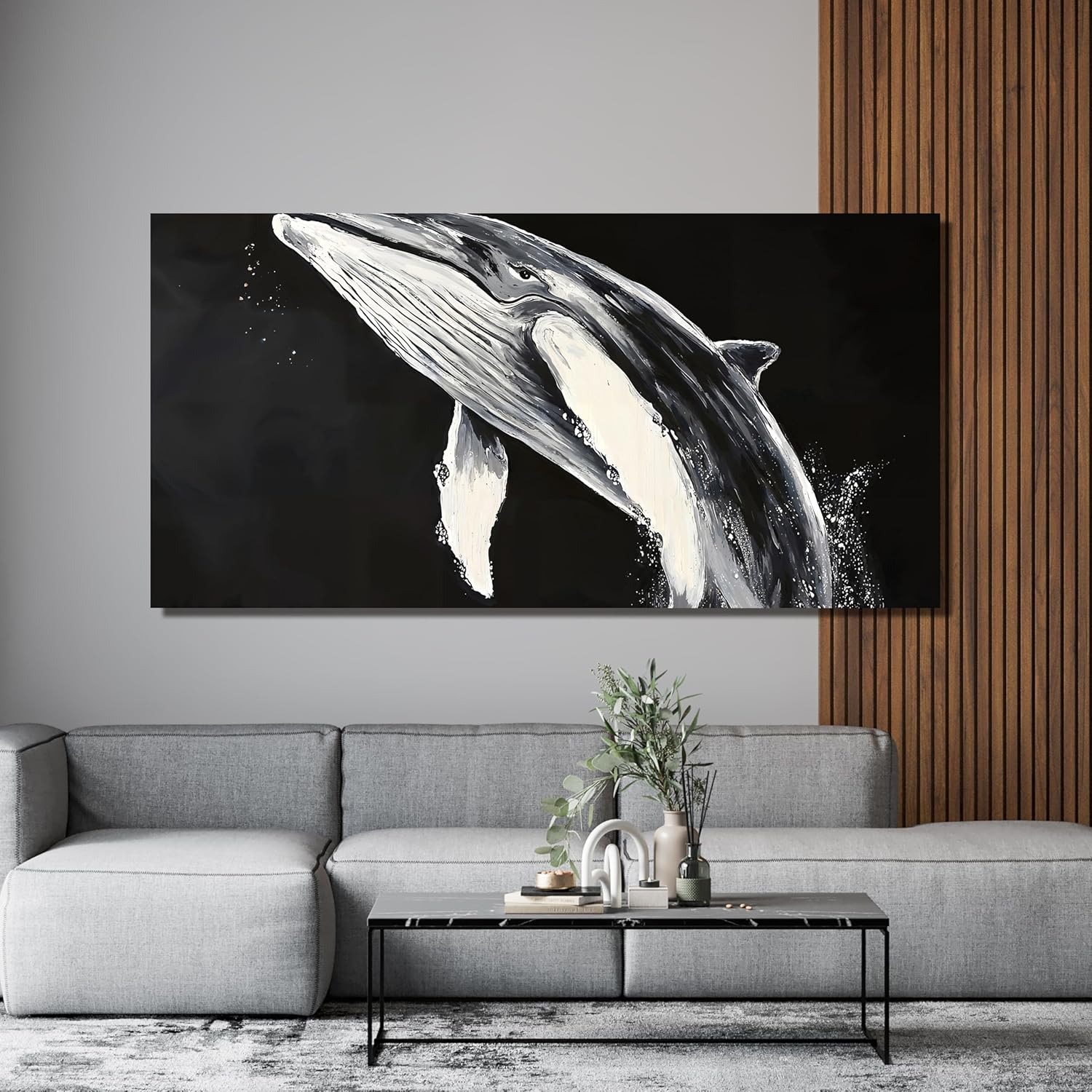 AIXMGSJS Canvas Wall Art Decor Black and White Wall Art Prints Large Modern Wall Art for Living Room Whales Decorations Artwork for Walls Black Canvas Art Wall Decor Bedroom Office Decor 20" X 40"