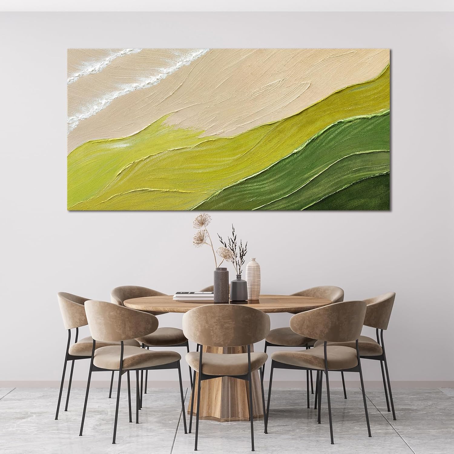 Abstract Wall Art Canvas Art Wall Decor Modern Green Wall Art Prints Chromatic Waves Large Minimalist Wall Art Decor Picture for Living Room Large Artwork for Walls Bederoom Office Decor 24"X48"
