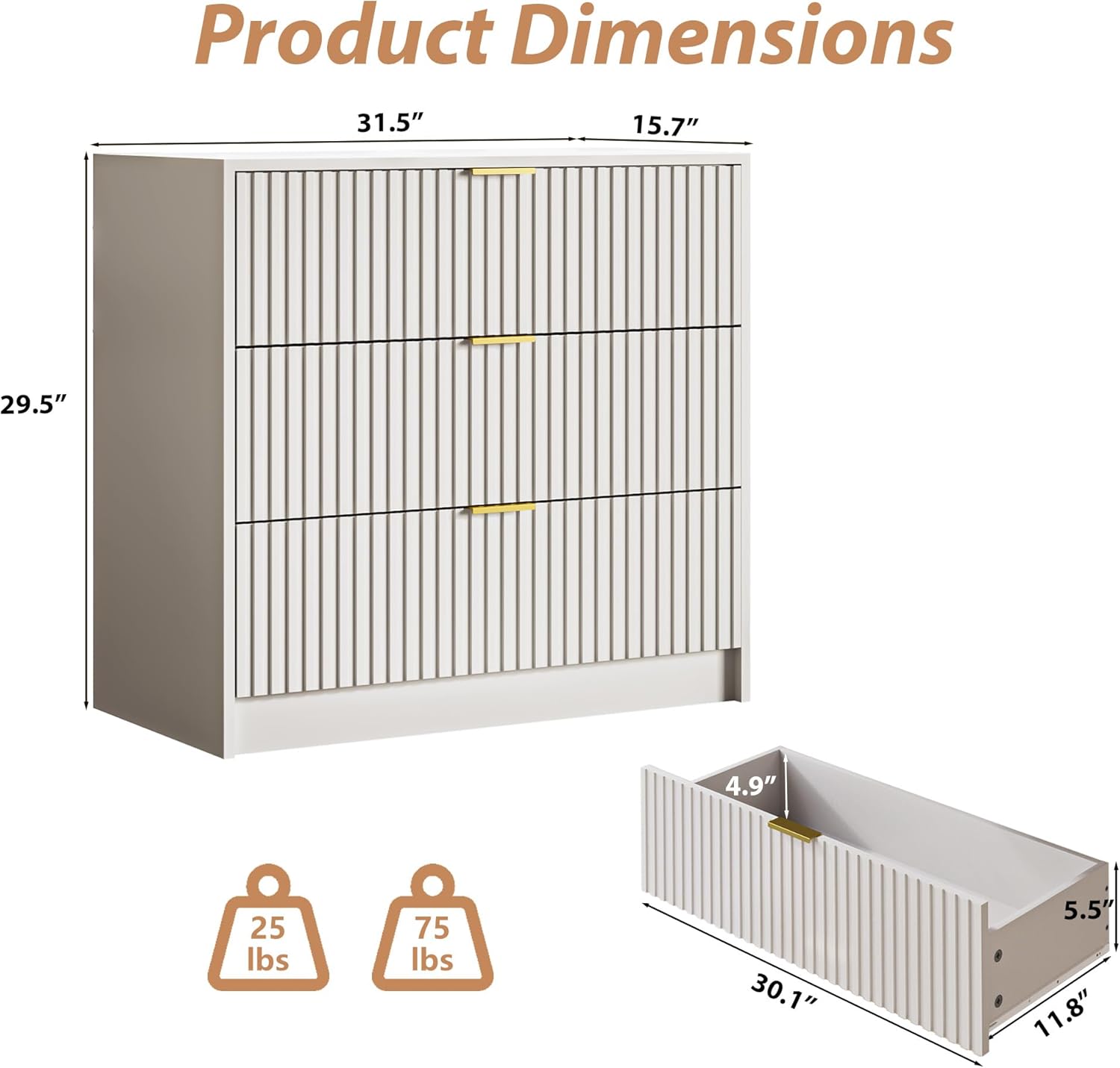 - Safety & Stability: Our fluted dresser features a dual anti-slip design, ensuring drawers stay securely in place, while anti-tipping straps provide added stability. The reinforced base and smooth damping system enhance structural integrity, offering reliable support for everyday storage needs.
