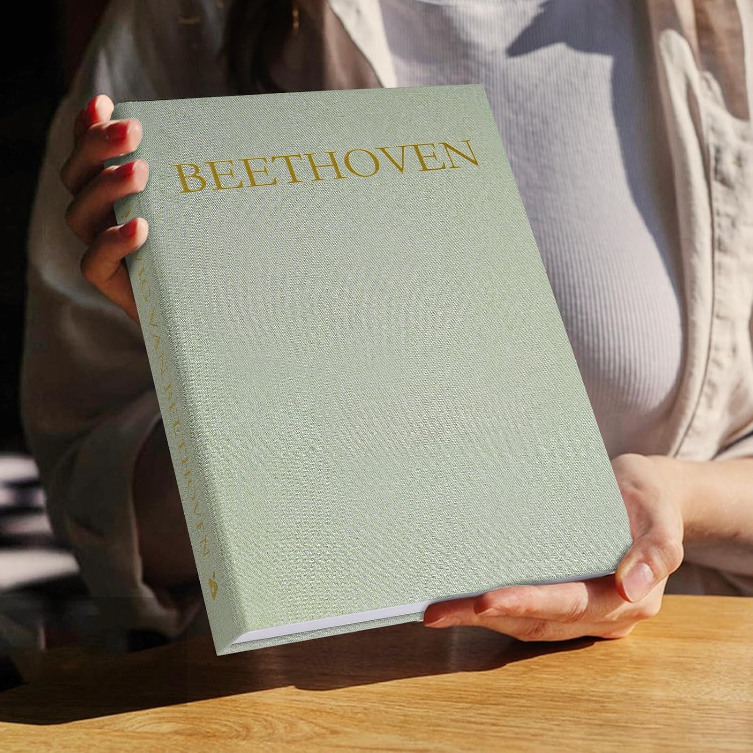 Aesthetic Decorative Books -Set of 2 Minimalist Linen Hardcover Faux/Fake Books for Coffee Table Home Decor Living Room Decoration, Photo Storage or as a Keepsake Box(Sage-beige-musician)