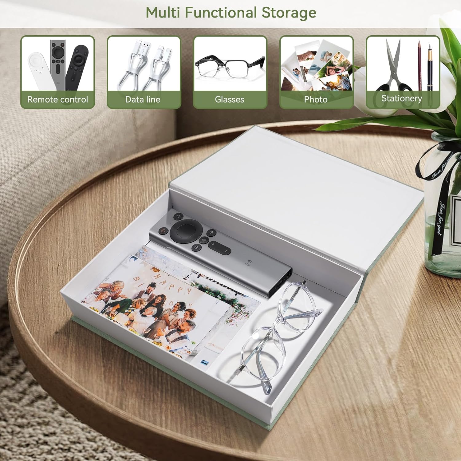 - Multi Functional Storage Space: This beautiful linen simulation book not only has decorative functions, but also powerful storage functions. You can place a remote control, glasses, charging cable, photos, and some personal privacy items, which can keep your desktop clean at all times and give you a clean and comfortable space