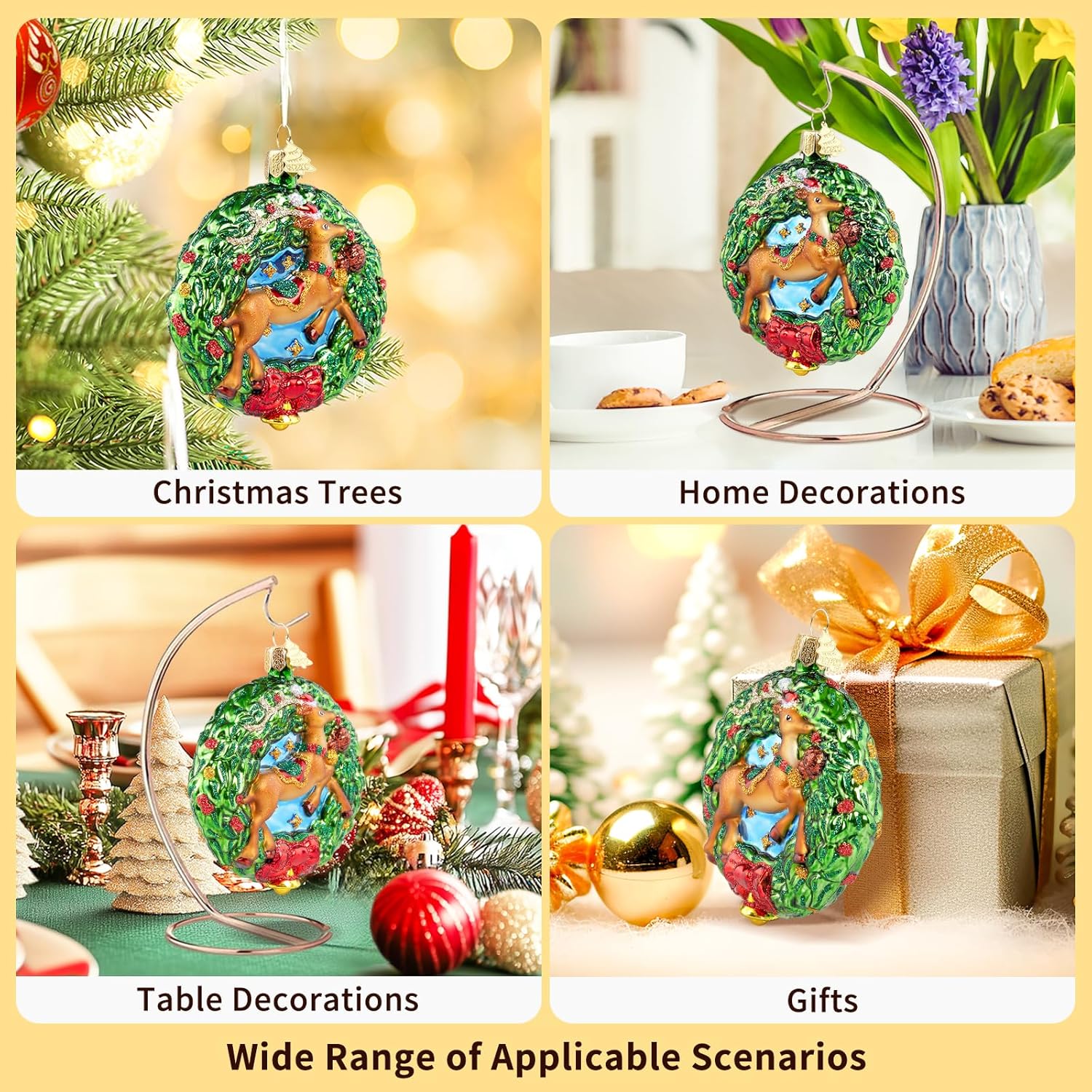 Reindeer Christmas Tree Ornaments,Blown Glass Christmas Ornaments, Wreath Collection Hanging Ornaments,Glass Home Decorations for Animal Lovers Holiday Party Daily Gifts