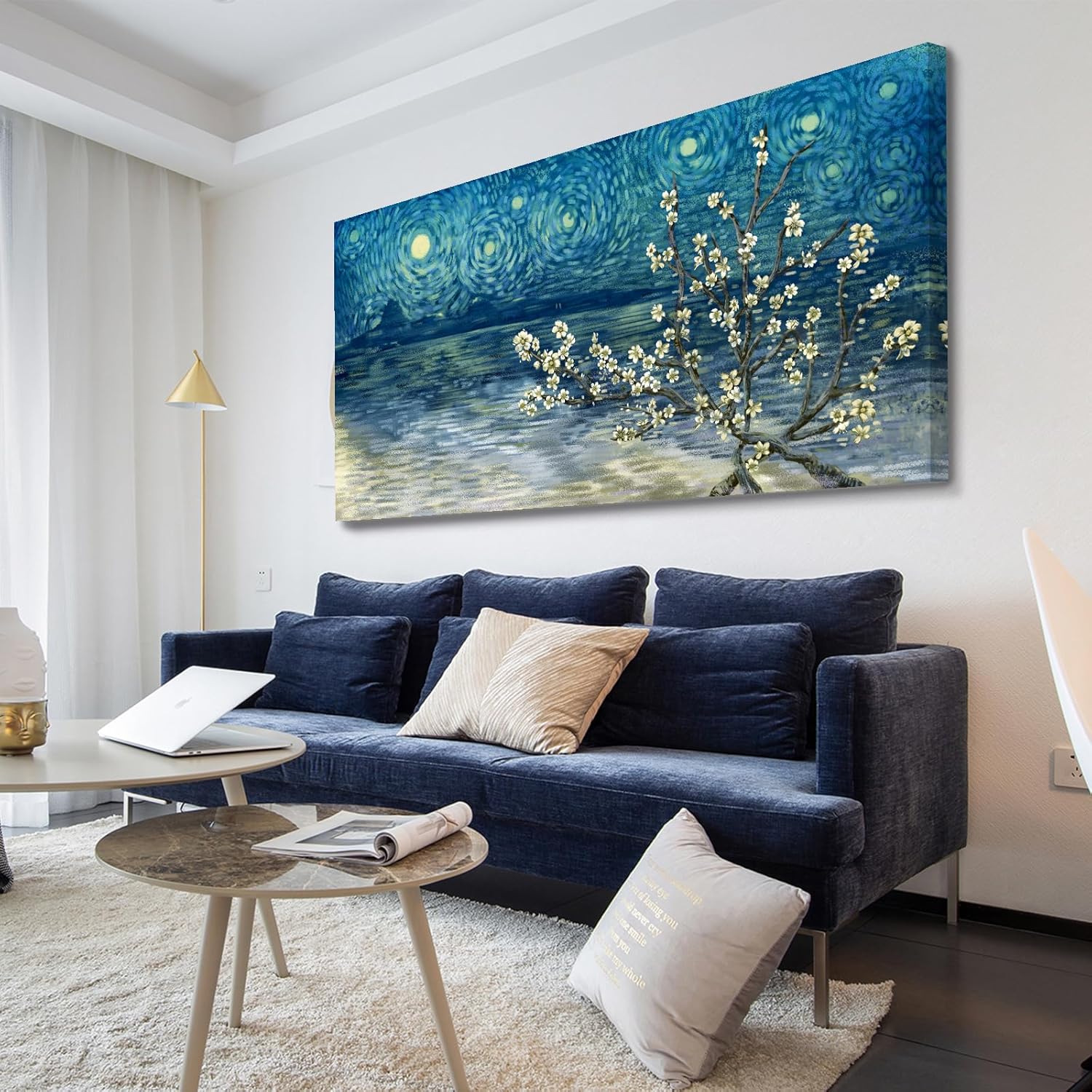 - ➤ Van Gogh Inspired Canvas Art: A poetic blend of Starry Night and Almond Blossom, this unique floral night scene brings emotional depth and visual tranquility. The swirling night sky contrasts with the delicate blossom, making it a striking yet serene statement piece.