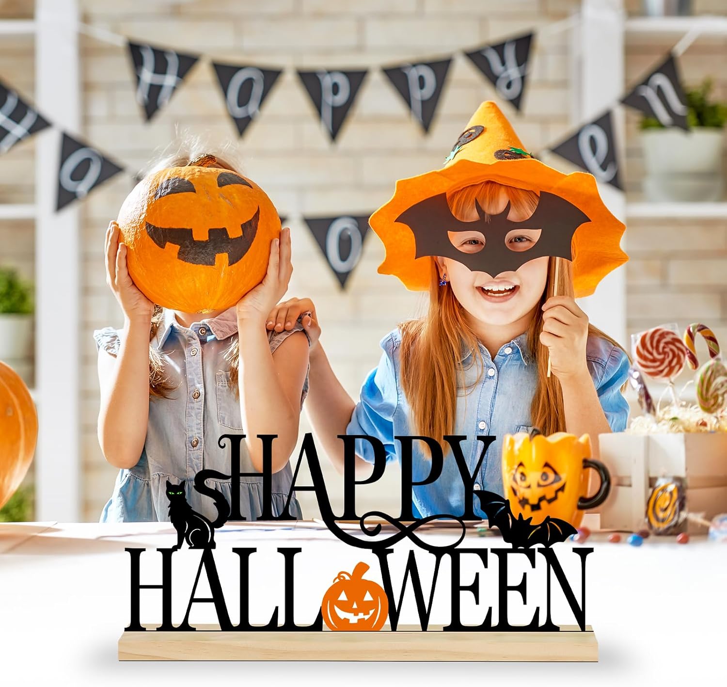 - Great Halloween Table Decor - Our adorable Happy Halloween signs are painted in high quality. When you using it, just insert the text part above into the base. This can easily become an eye-catching dining table centerpiece.
