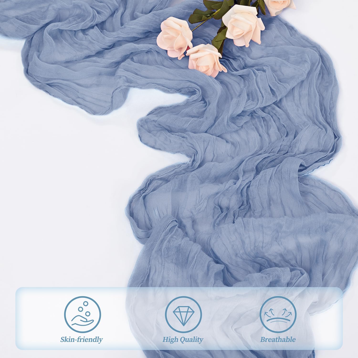 20 Pack Dusty Blue 10FT Cheesecloth Table Runner Rustic Gauze Fabric Cheese Cloth Table Runner for Wedding Bridal Baby Shower Table Decor 20 x 120 Inch Long Boho Sheer Birthday Party Table Decorations