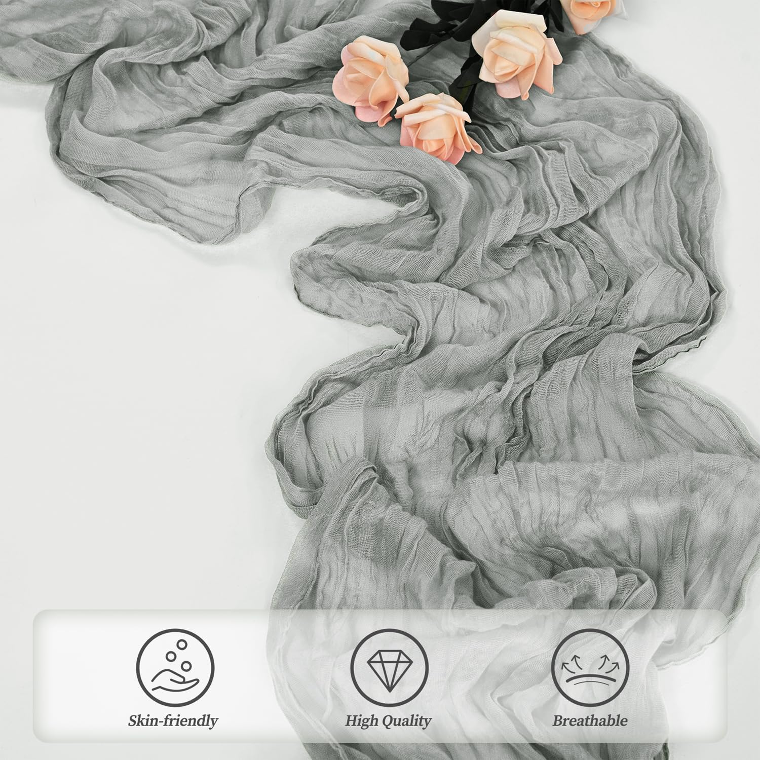 20 Pack Gray 10FT Cheesecloth Table Runner Rustic Gauze Fabric Cheese Cloth Table Runner for Wedding Bridal Baby Shower Table Decor 20 x 120 Inch Long Boho Sheer Birthday Party Table Decorations