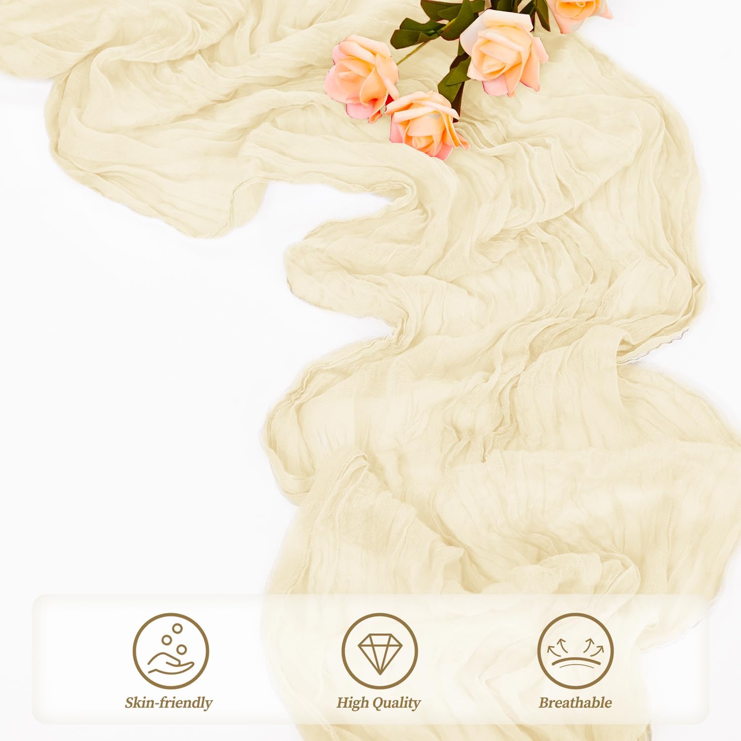 10FT 6 Pack Beige Cheesecloth Table Runner 20 x 120 Inch Long Rustic Gauze Fabric Cheese Cloth Table Runner for Wedding Bridal Baby Shower Table Decorations Boho Sheer Birthday Party Table Decor