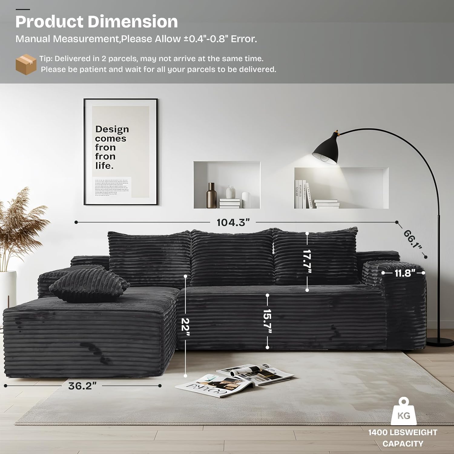 - Compressible & Space-Smart Design: Ultra-lightweight foam core compresses to 1/4 size for effortless moving through narrow doors or stairs – ideal for apartments, dorms, and renters. Expands to a stylish L-shaped sofa in hours, blending seamlessly with modern living rooms or cozy bedroom decor