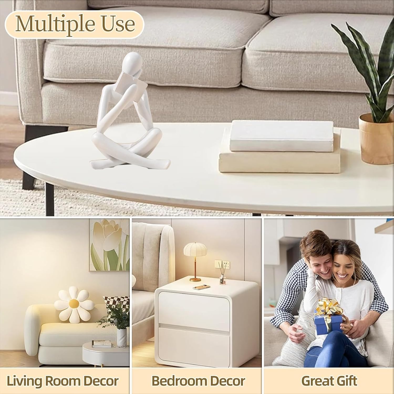 Bookshelf Decor Thinker Statue - Abstract Style Thinker Sculptures Modern Aesthetic Figurine Decoration Statues for Home Decor-Right Thinking-White